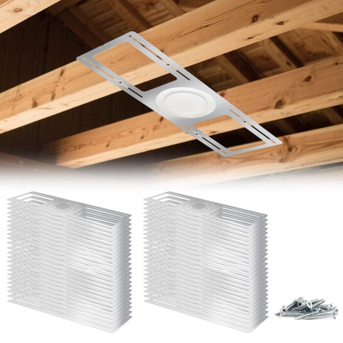 These galvanized steel mounting plates are excellent for recessed wafer light installation. The pre-cut round holes fit multiple light sizes, and the flat steel design ensures a stable and durable hold. With 24 in the pack, it’s perfect for larger projects, and the included screws made setup hassle-free. A great value for contractors or DIYers upgrading multiple spaces with LED recessed lights.