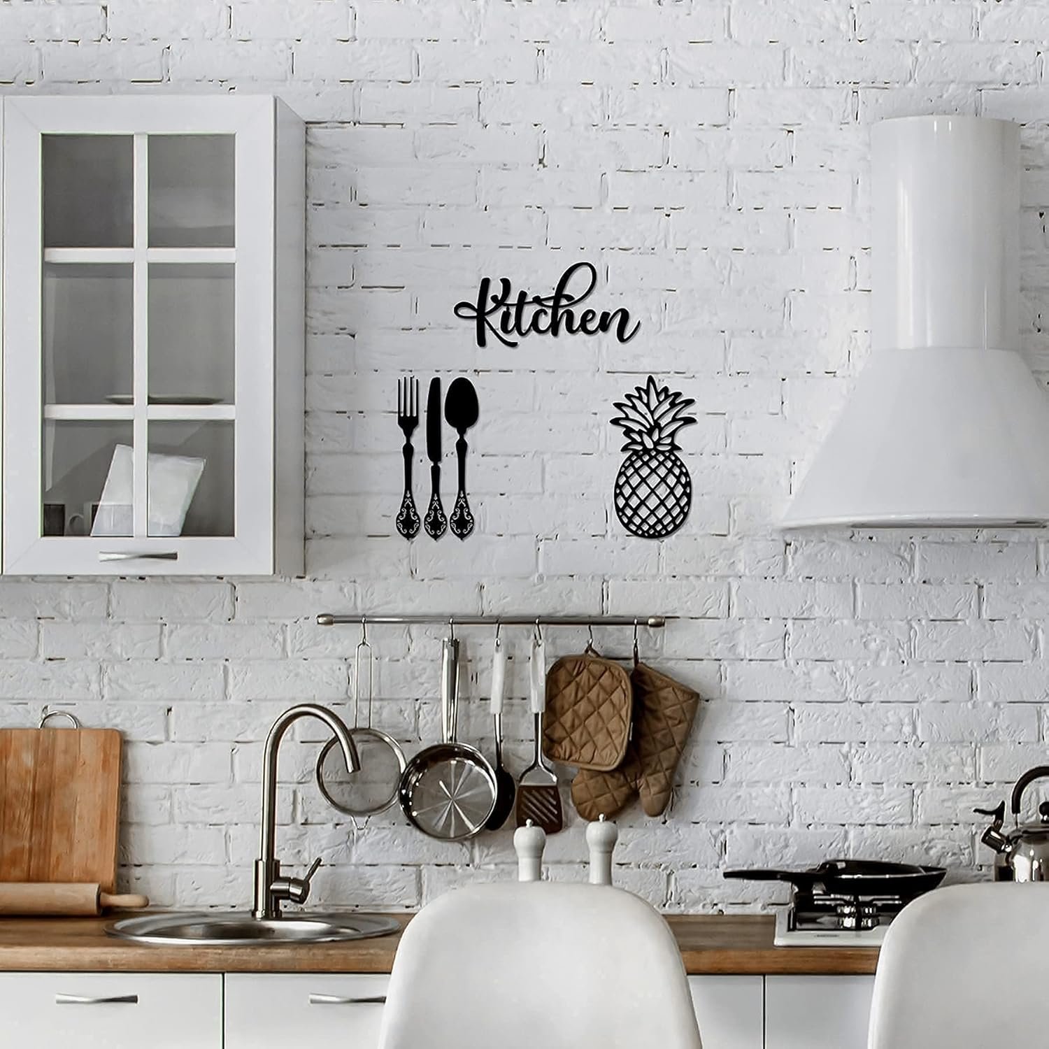4eN Kitchen Sign Modern Wall Decor for Dining Room, Kitchen,Cafe and Farmhouse, Wooden Kitchen Decor and Accessories, Cutlery Wall Sign, MDF 5 Pieces