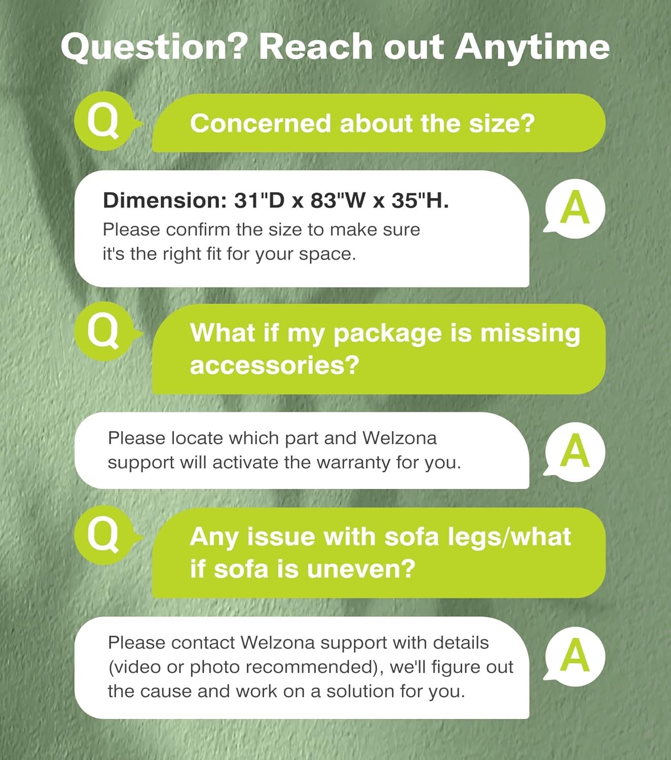 I purchased this beige sofa from Welzona at the end of May, and it’s been a fantastic addition to my home. The design is clean and modern, and the neutral beige color blends beautifully with my decor. It was easy to assemble and fits perfectly in a smaller living room or apartment without feeling cramped. The all-wood frame feels sturdy, and the fabric has a soft, high-quality texture that gives it an upscale look.What really surprised me is how comfortable it is for a compact couch. The cushions are firm yet cozy—great for lounging, reading, or watching TV. For the price, the quality is impressive, and the free delivery was right on time. If you’re looking for a stylish, affordable, space-saving couch, I highly recommend this one. It’s truly a great value and looks even better in person!