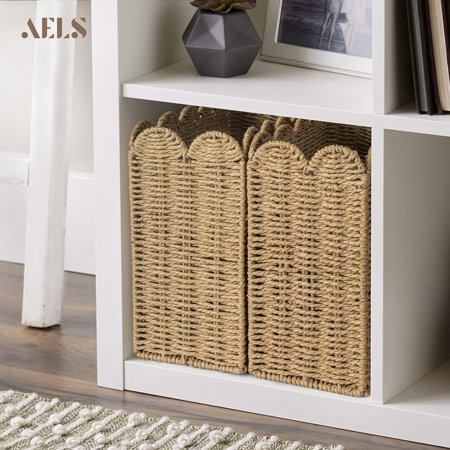 11 reviews for AELS Woven Natural Fibre Magazine Holder, Scalloped Edge Floor Magazine Rack, Hand-woven Organizer, Boho Modern Farmhouse Book Basket, File Newspaper Mail Holder for Office