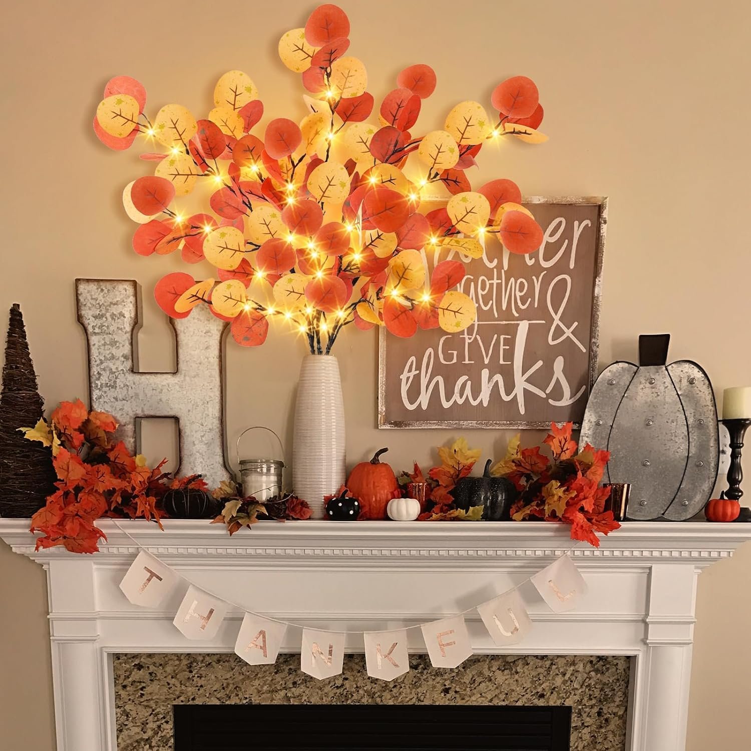 11 reviews for Agusbagli 30in 60LED Lighted Fall Eucalyptus Branches with Timer, Light Up Fall Eucalyptus Leaves Stems Battery Operated Lit Artificial Twig Autumn Fall Decorations for Home Wedding Party Decor