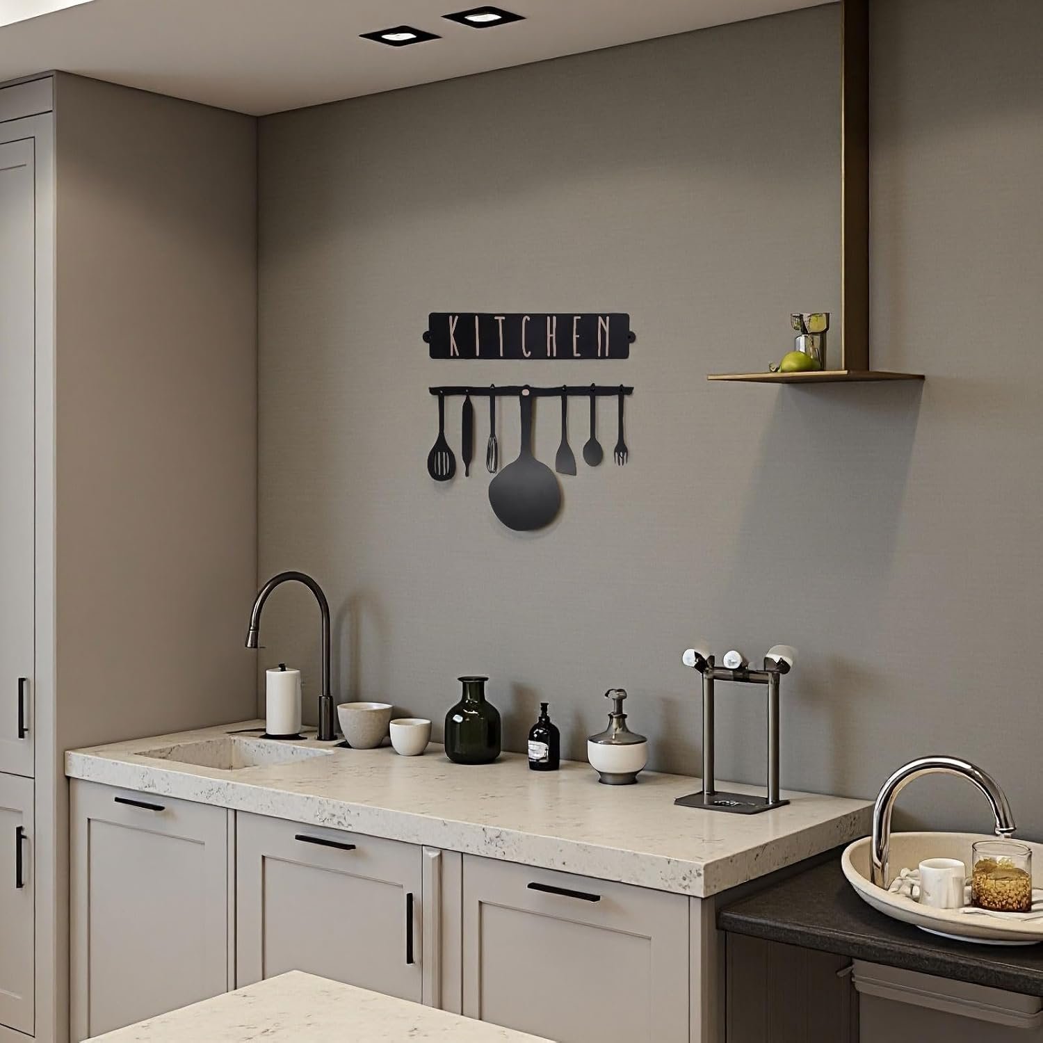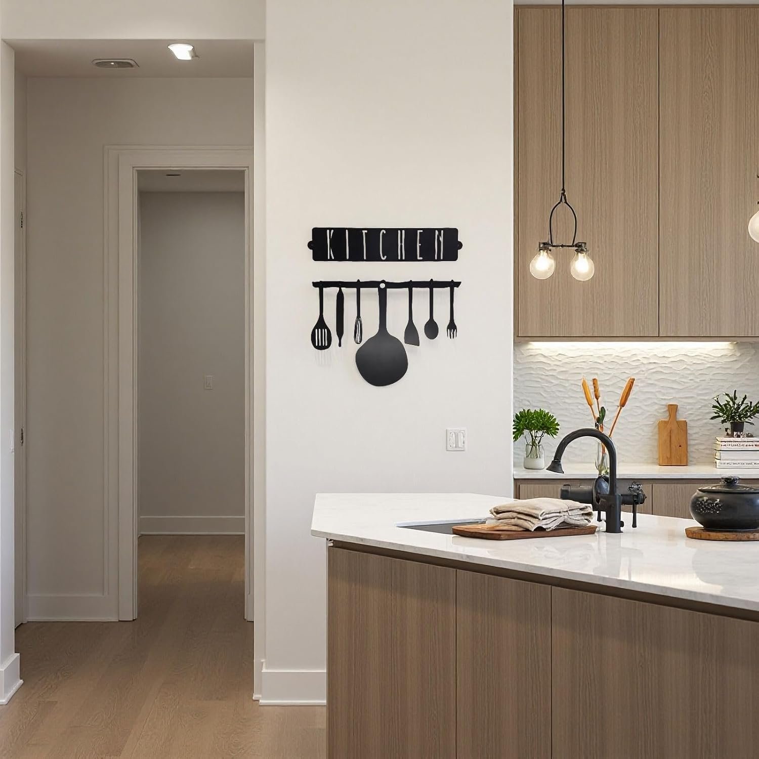 This made a super nice addition to my kitchen decor. Really love the design of the larger bottom piece, as well as the font of the word “kitchen” in the above piece. (In the photo provided. The material is a bit bendy, but to fix it you can just bend it back to how it was originally without the letters or hooks snapping off if you happen to drop it on the floor. I feel it’s the perfect size to also hang some large cooking utensils, as I have done. I think you can go no wrong with this cute piece! Highly recommended, especially for more minimalist-inspired kitchens.