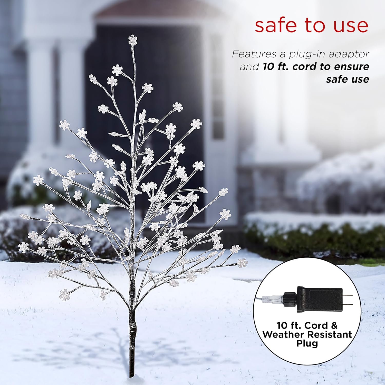 Well made and easy to assemble for outdoor holiday decoration. The tree height is under 5 ft and snowflake lights are very bright. Compact for easy storage since the limbs are bendable. Perfect for my needs. Very happy with this product.