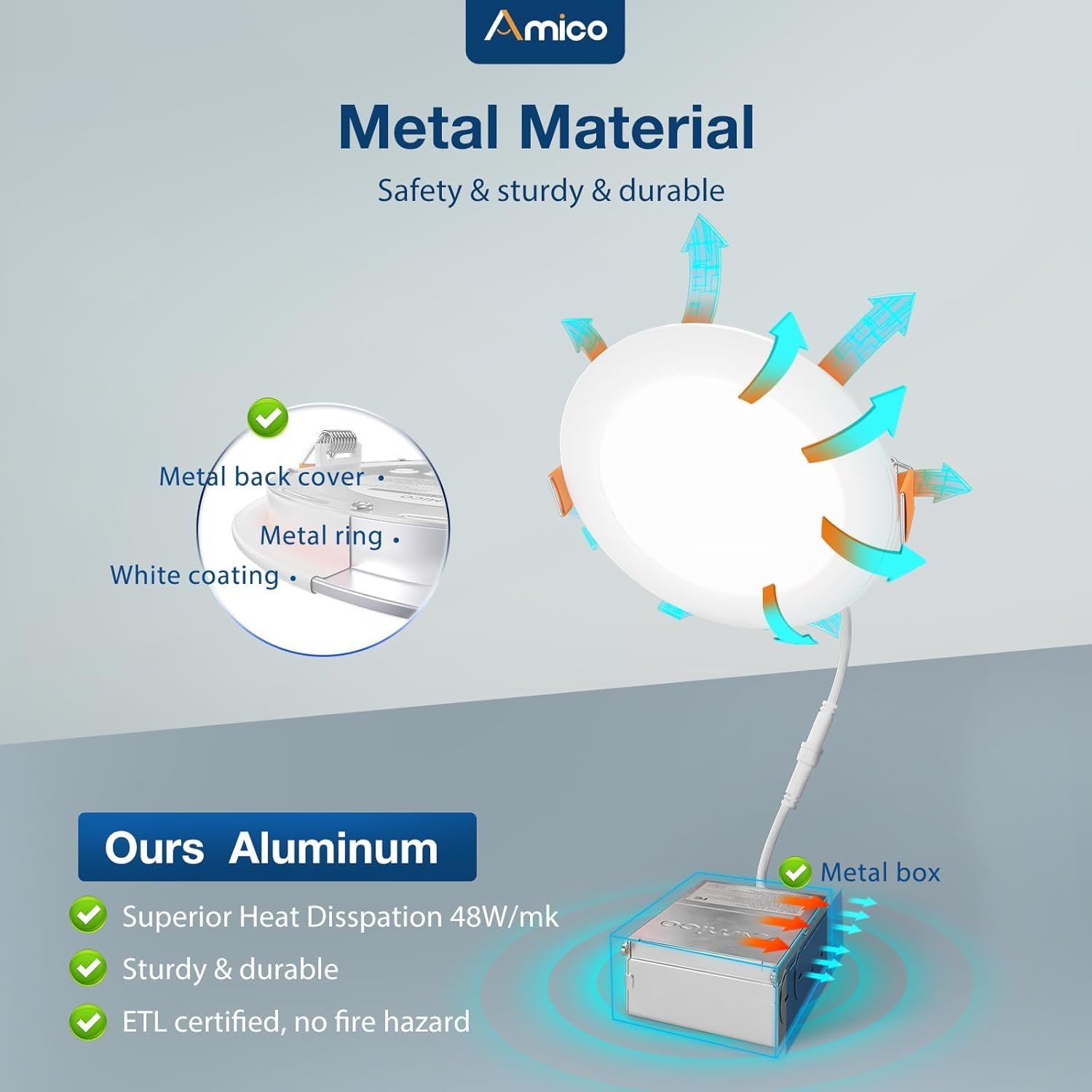 9 reviews for Amico 6 Pack 6 Inch 5CCT Ultra-Thin LED Recessed Ceiling Light with Junction Box, 2700K/3000K/3500K/4000K/5000K Selectable, 12W Eqv 110W 1050LM Brightness Dimmable Canless Wafer Downlight, ETL & FCC