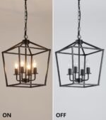 13 reviews for AMZASA UL Listed Black Industrial 4 Light Lantern Chandelier Ceiling Light Fixtures Farmhouse Metal Cage Rustic Geometric Pendant Light for Kitchen Island Entryway Dining Room Stairs and Hallway