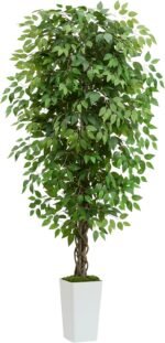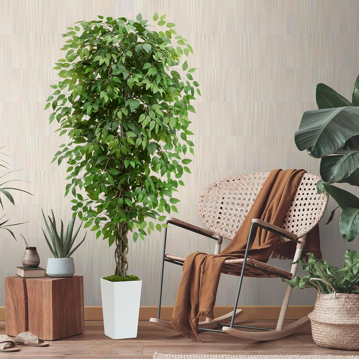 I bought this 6-foot artificial ficus tree specifically to brighten up my office space, and wow – it has completely transformed the room! I work in a corporate environment where natural light is limited, so real plants have always been a challenge for me. This artificial tree was the perfect solution.Right out of the box, I was impressed with the quality. The packaging was secure, and all the pieces were clearly labeled (which made assembly incredibly straightforward). It took me maybe 15 minutes to put together – no tools needed, just following the simple step-by-step instructions. The metal wire framework feels incredibly sturdy, and I love that I can adjust and shape the branches exactly how I want them.Realistic AppearanceThis is where this tree really shines! The craftsmanship is remarkable – the leaves have that perfect waxy ficus texture that feels authentic to the touch. The color variation in the foliage looks completely natural, with some leaves appearing slightly more matte while others have that subtle shine real ficus leaves have. I’ve had colleagues stop by my office and genuinely ask about my “plant care routine” because they assumed it was real!The 6-foot height is perfect for filling out my office so it isn’t bleak and empty. The modern white planter (which comes included) fits seamlessly with my office’s contemporary aesthetic, and the artificial moss on top adds a nice finishing touch. It’s brought life and warmth to what was previously a pretty sterile workspace. The tall, elegant silhouette creates a nice focal point without being overwhelming.After three months of use, here’s what I love most:- Zero maintenance: No watering, no worrying about lighting conditions, no dead leaves to clean up- Adjustable: I’ve reshaped it twice to fit different office layouts during rearranging- Durable: The branches are surprisingly strong – I even hung a small string of warm LED lights on it for the holidays- Easy cleaning: Just a quick dust with a microfiber cloth every few weeks keeps it looking freshAt this price point, the quality exceeded my expectations. The materials feel premium – not cheap or obviously fake like some artificial plants I’ve seen. The polyester leaves have held their shape and color perfectly, and the waterproof feature means I don’t have to worry about occasional office spills or humidity from the nearby break room.If you’re on the fence about artificial plants, this ficus tree might just change your mind. It’s given me all the aesthetic benefits of having greenery in my workspace without any of the stress or maintenance requirements. Perfect for busy professionals, frequent travelers, hybrid workers, or anyone who loves plants but struggles to keep them alive.The only minor downside? Now all my coworkers want to know where I got it because they want one too! 😊Would I buy again?Absolutely. In fact, I’m already eyeing one for my home office.Perfect for: Offices, apartments, anyone who travels frequently, plant lovers with busy schedules, or spaces with poor natural light conditions.