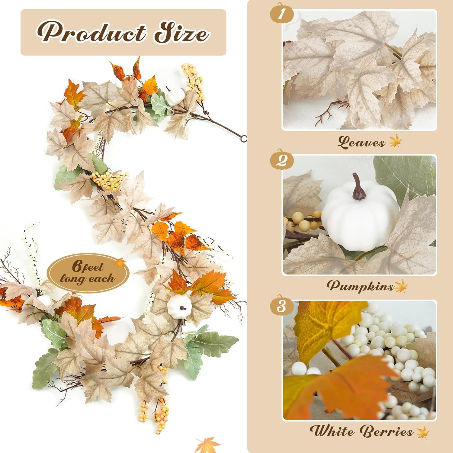 Tags: 6FT, Artificial, Artmag, Autumn, Berry, Christmas, Decorations, Fall, Fireplace, Foliage, Garland, Halloween, Home, LeafHanging, Maple, Pumpkins, Thanksgiving, Vine, WhiteBrown