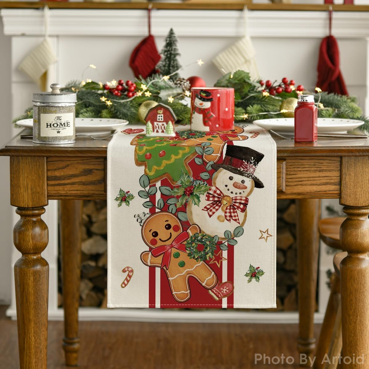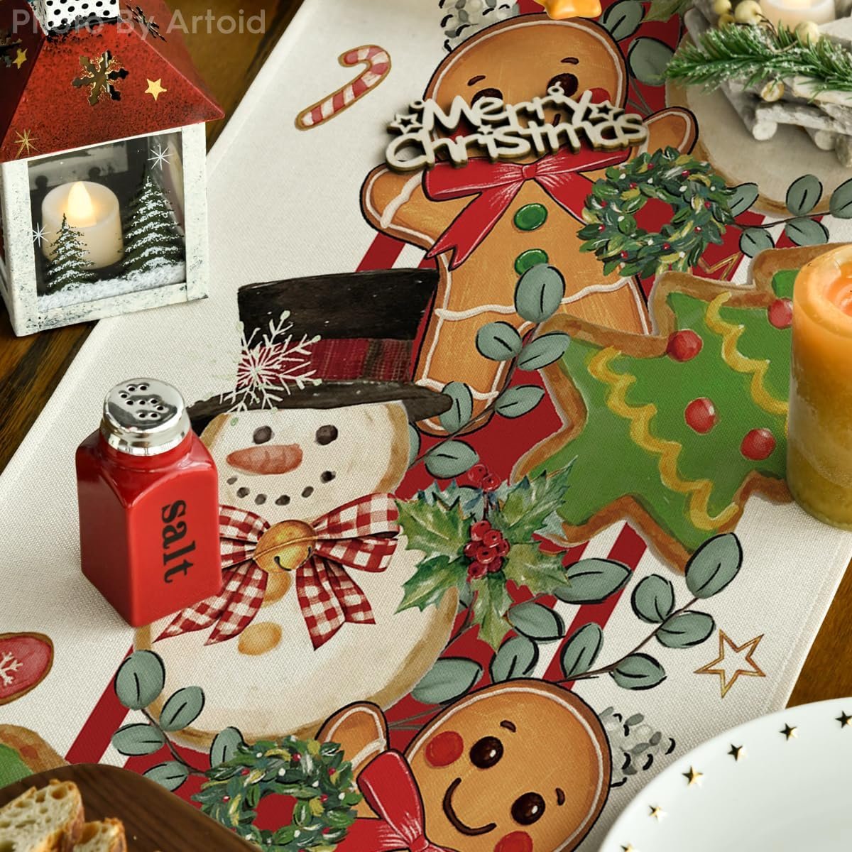 2 reviews for Artoid Mode Gingerbread Snowman 210 GSM Christmas Table Runner, Seasonal Winter Tree Kitchen Dining Table Decoration for Home Party Decor 13×108 Inch