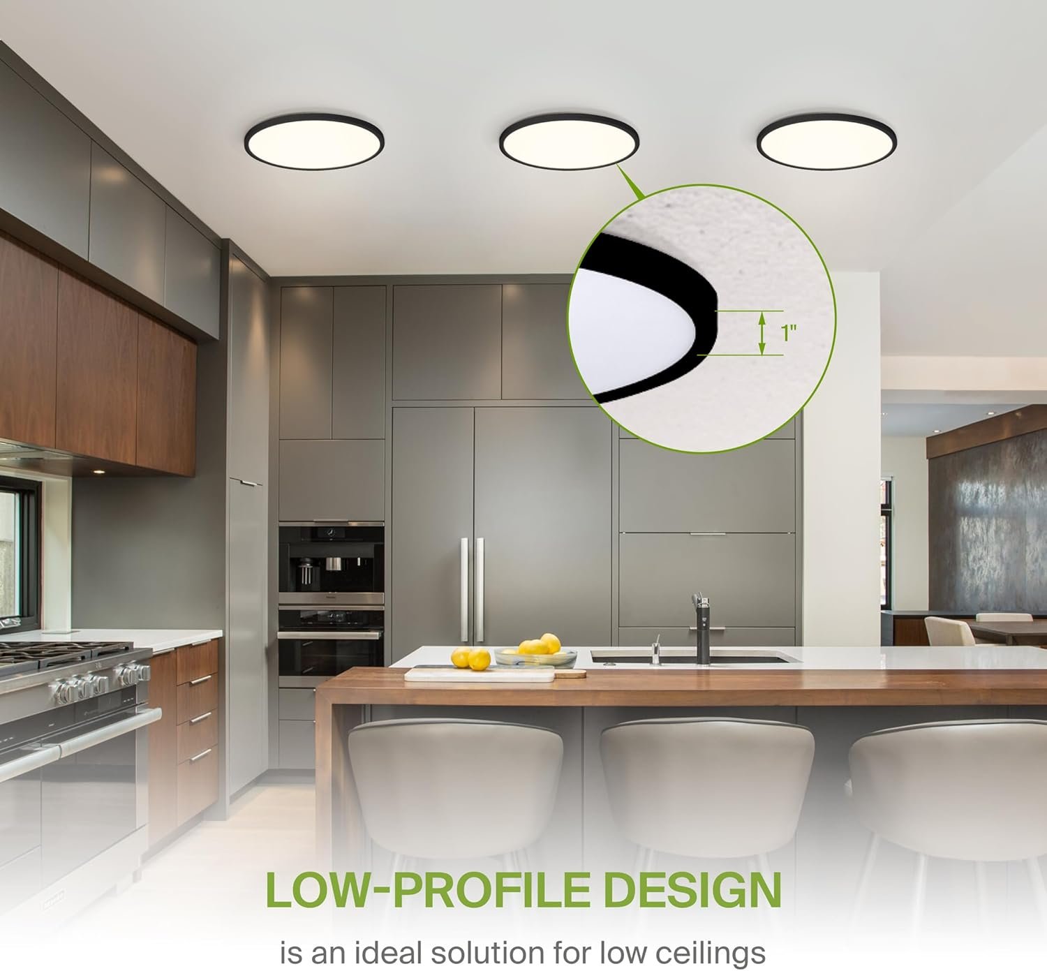 8 reviews for ASD LED 12″ Round Flush Mount Ceiling Light Fixture, Low Profile Surface Lighting | 5CCT, Dimmable, Ultra-Thin, ETL Listed | 24W 1900LM 2700-6000K 120V | Kitchen, Hallway Lamp | Black, 12 Pack
