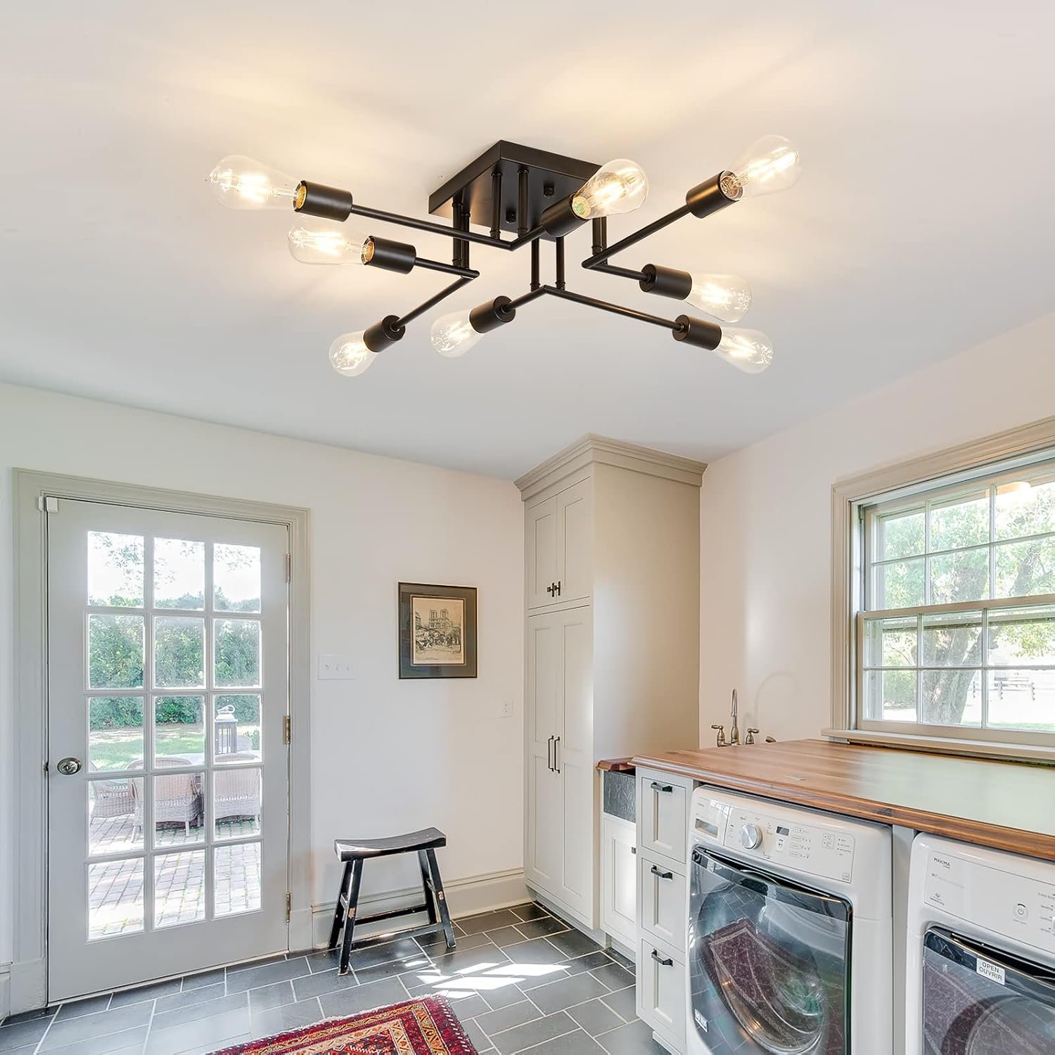 8 reviews for ASGYISA 8-Lights Semi Flush Mount Ceiling Light Fixture Modern Metal Black Sputnik Chandeliers with E26 Bulb Base Close to Ceiling Light for Kitchen Dining Room Living Room Hallway Bedroom