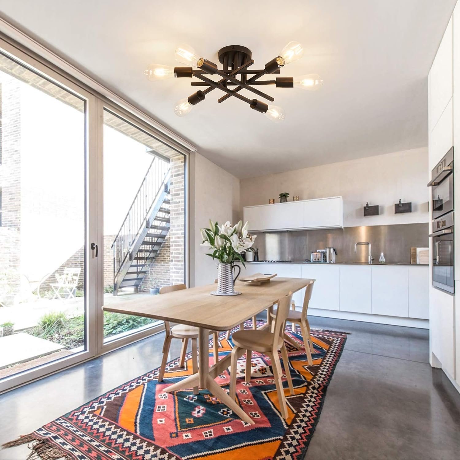 8 reviews for ASGYISA Semi Flush Mount Modern Ceiling Light Fixture, 6 Lights Black Vintage Matte Sputnik Chandelier Ceiling Lamp with E26 Bulb Base for Farmhouse Dining Room Living Room Bedroom Study Kitchen