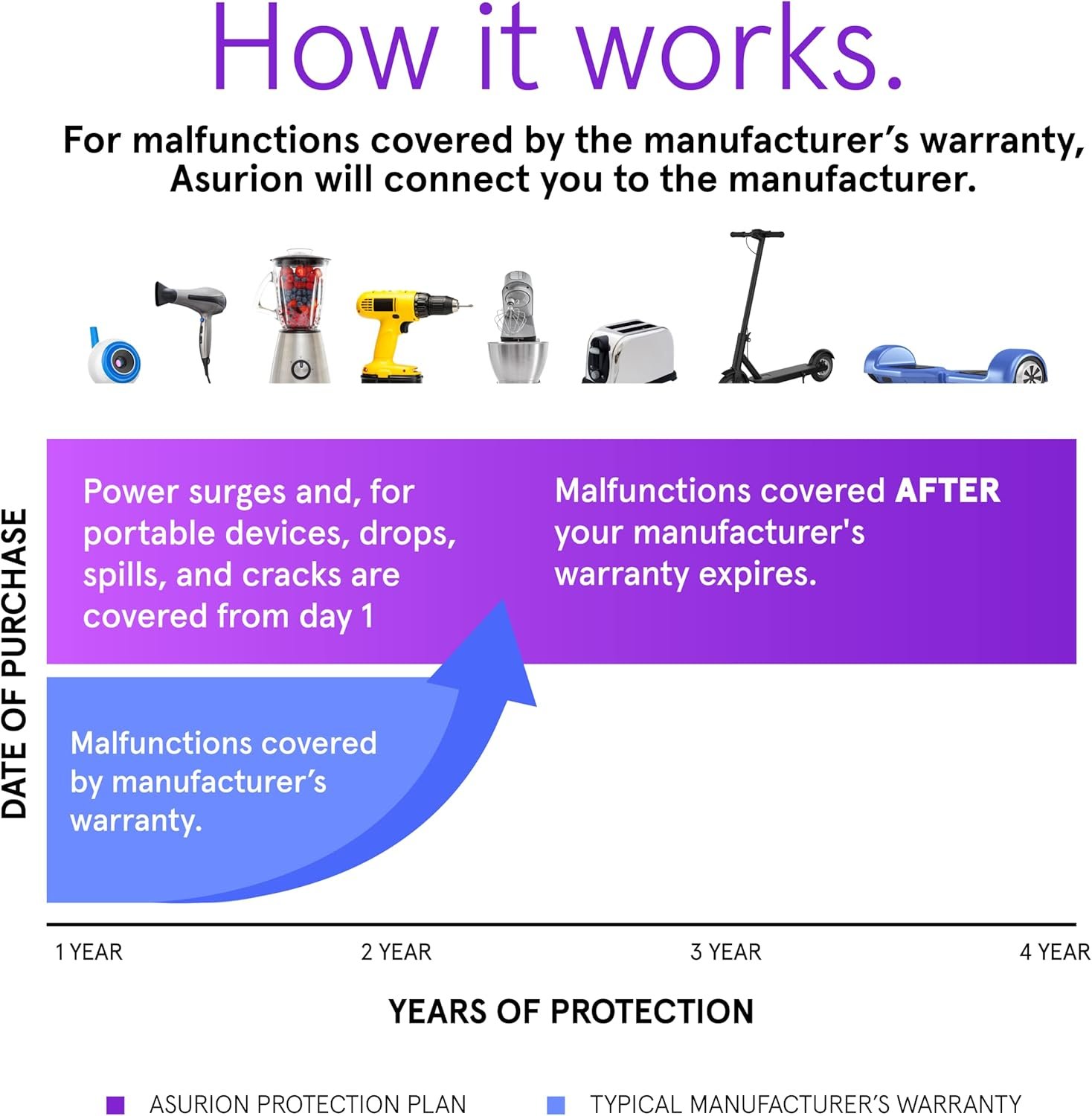 My advice is to review the product warranty and if they consider that they need extra protection, invest a little more money and buy the Asurion, Since the process in case they need to fill out a claim, is quite fast and easy and in my case when I finish filling out the claim after a few minutes I received the refund, And so you can use the same money to make your new purchase. For me, the service was quite good.. Of course I would buy the insurance offered on Amazon again.. I hope my comment serves a lot of buyers and is just as easy and fast as me, in case they need to use it.
