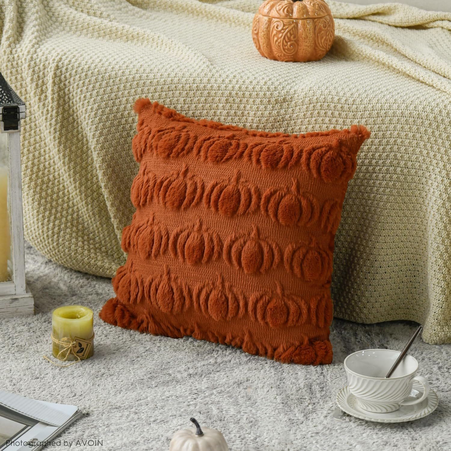 12 reviews for AVOIN colorlife Fall Pumpkin Caramel Throw Pillow Covers, 20 x 20 Inch Seasonal Autumn Thanksgiving Harvest Decoration Soft Plush Faux Fur Jacquard Cushion Case Decoration for Sofa Couch Set of 2