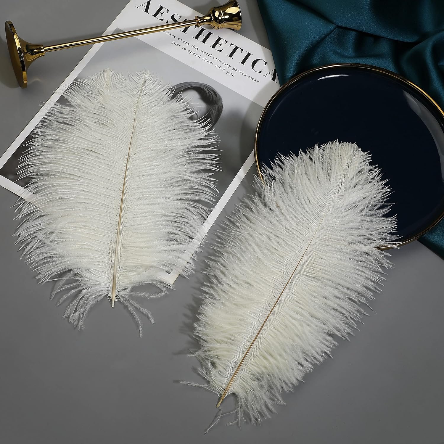 Ballinger Beige Ostrich Feathers Bulk – 12Pcs 12-14inch Large Boho Feathers for Vase,Wedding Party Centerpieces Home and Pampas Grass Decor(Beige)