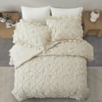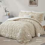 8 reviews for BEDAZZLED Queen Size Comforter Sets, Beige Bedding Comforter Set, 3 Pieces Pinch Pleat Bedding Sets with Comforter and Pillowcases Soft Farmhouse Shabby Chic Comforter for All Season