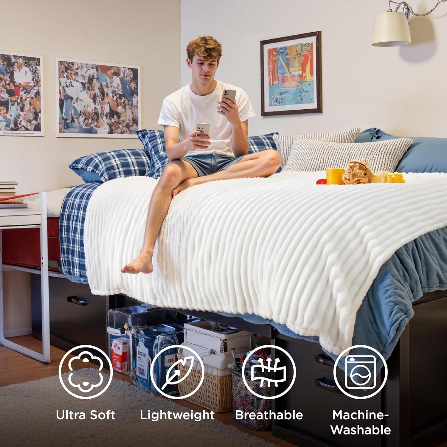 Bedsure GentleSoft White Throw Blanket for Couch – Cozy Blanket for Women, Cute Fleece Throws for Girls, Teacher Gifts Birthday Gifts for Women Men Mom, Room Home Dorm Decor, Off White, 50×60 Inches