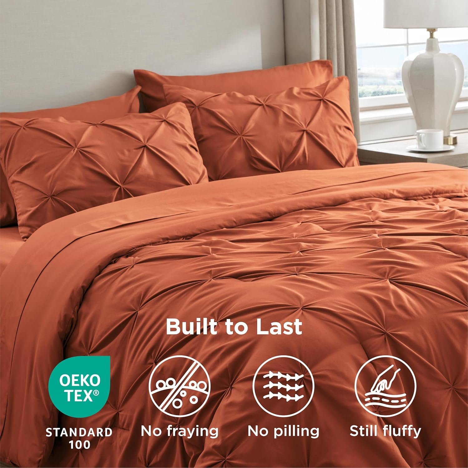 13 reviews for Bedsure Queen Comforter Set Burnt Orange – Bed in a Bag Queen Size 7 Pieces, GentleSoft™ Pintuck Bed Set Gift for Family, Pinch Pleat Burnt Orange Comforter with Sheets, Pillowcases & Shams