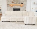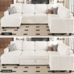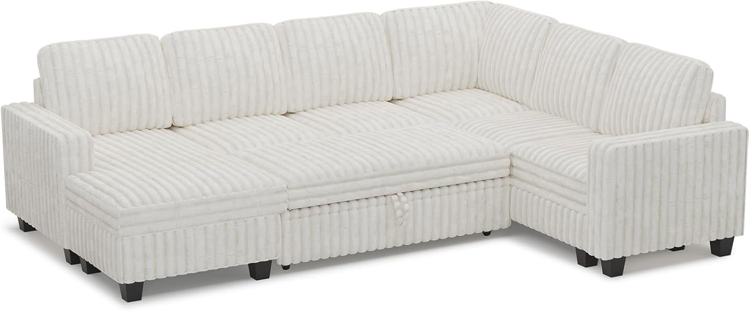 6 reviews for Belffin Corduroy Sleeper Sofa Bed with Storage Chaise Modular Sectional Sofa Couch with Pull Out Bed L Shaped Sectional Couches for Living Room White Couch