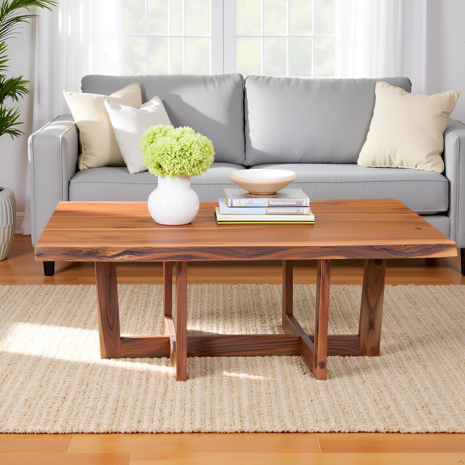 Berkshire 48-Inch Live Edge Acacia Wood Coffee Table – Handcrafted Natural Wood with Floor Protectors – Large Modern Industrial Farmhouse Accent Table by Alaterre Furniture