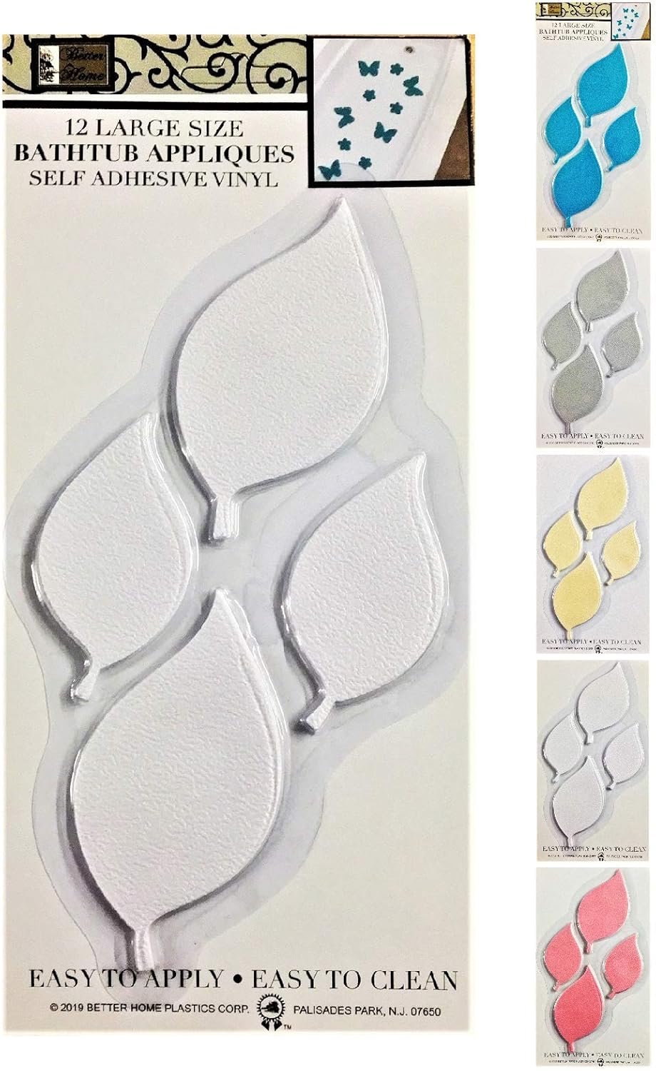 Better Home 12 Leafs Shape Bathtub/Shower Appliques Safety Non Slip Treads, Latest Decoration Colors (White)