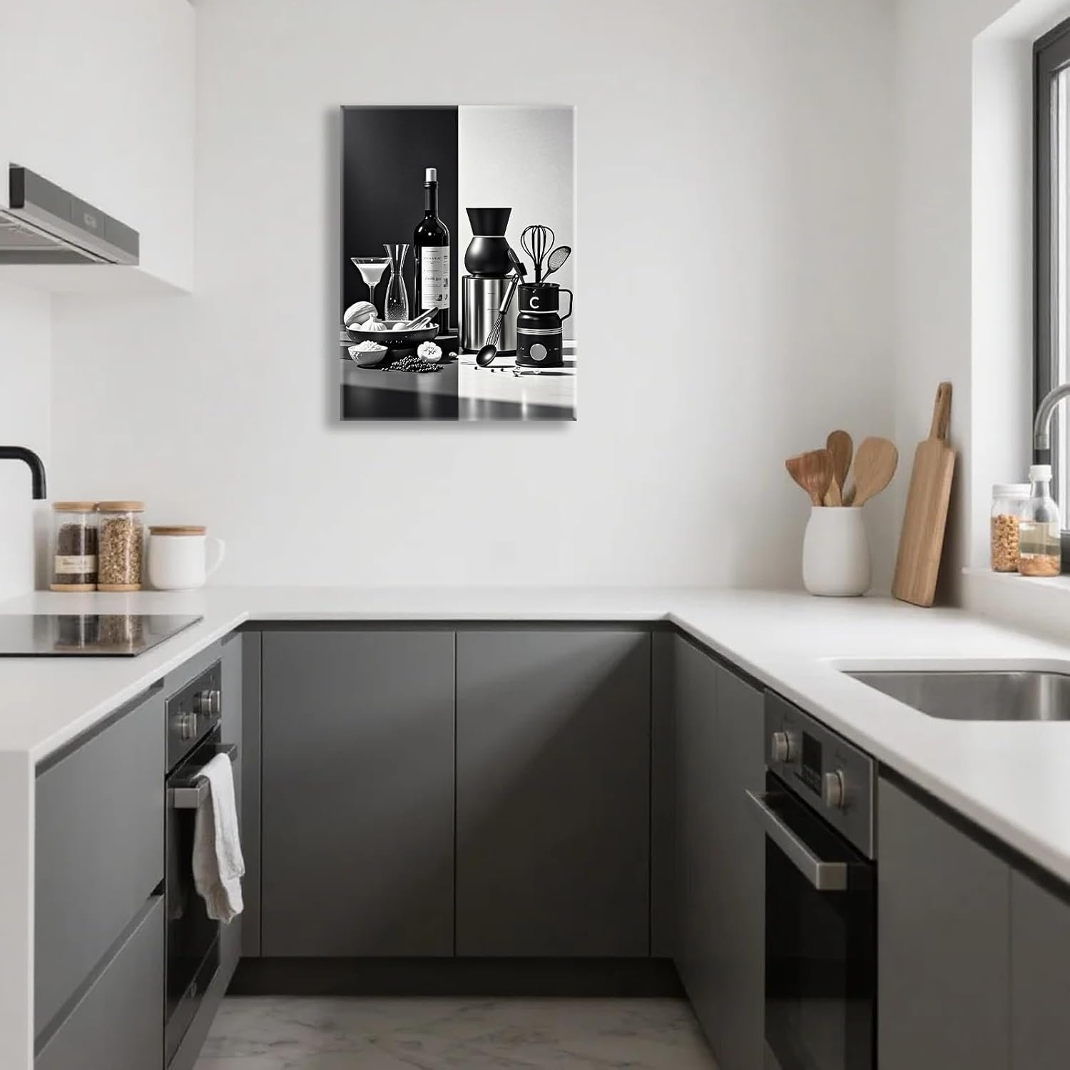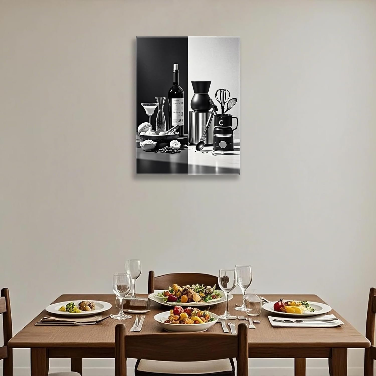 7 reviews for Black and White Kitchen Canvas Wall Art Dining Room Wall Decor Wine Bottle Seasoning Spoon Kitchen Picture Poster Prints Artwork Painting Dining Room Restaurant Bar Home Decorations 12×16 Inch Framed