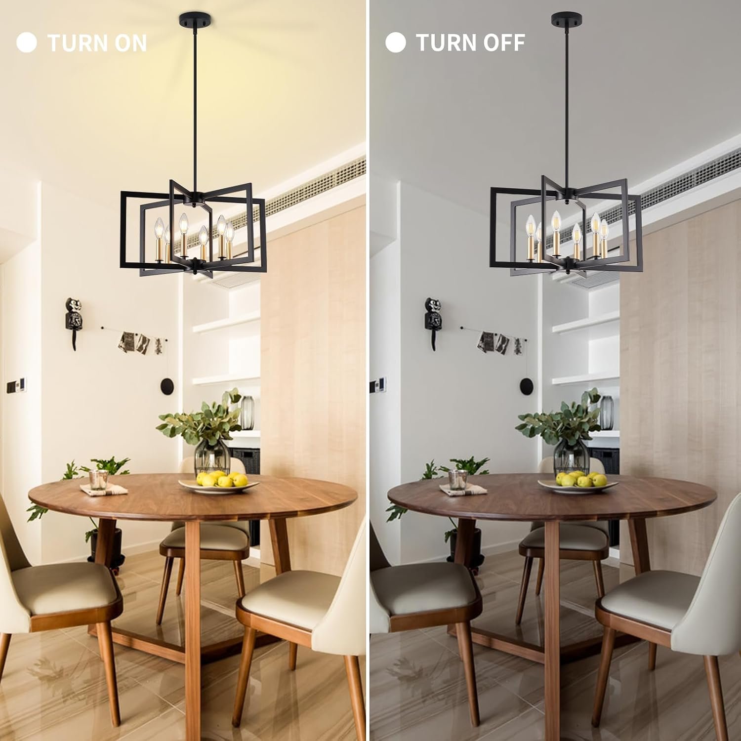 9 reviews for Black Chandelier, Dining Room Light Fixture Geometric Metal Modern Industrial Chandelier Lighting for Farmhouse Living Room Entryway Kitchen (E12 Bulbs Not Included, 6 Light, Black Gold)