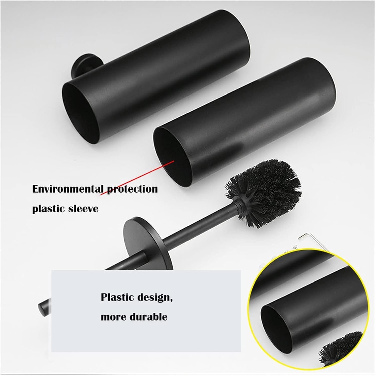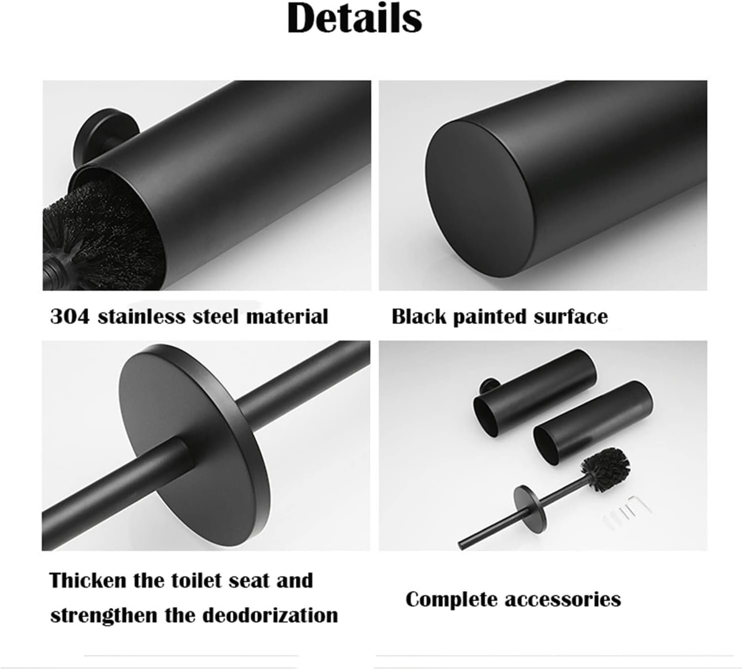 Black Stainless Steel Toilet Brush Holder Set Bathroom Cleaning Brush Wall Hanging Bathroom Storage Organization Goods Cleaning Brush (Black)