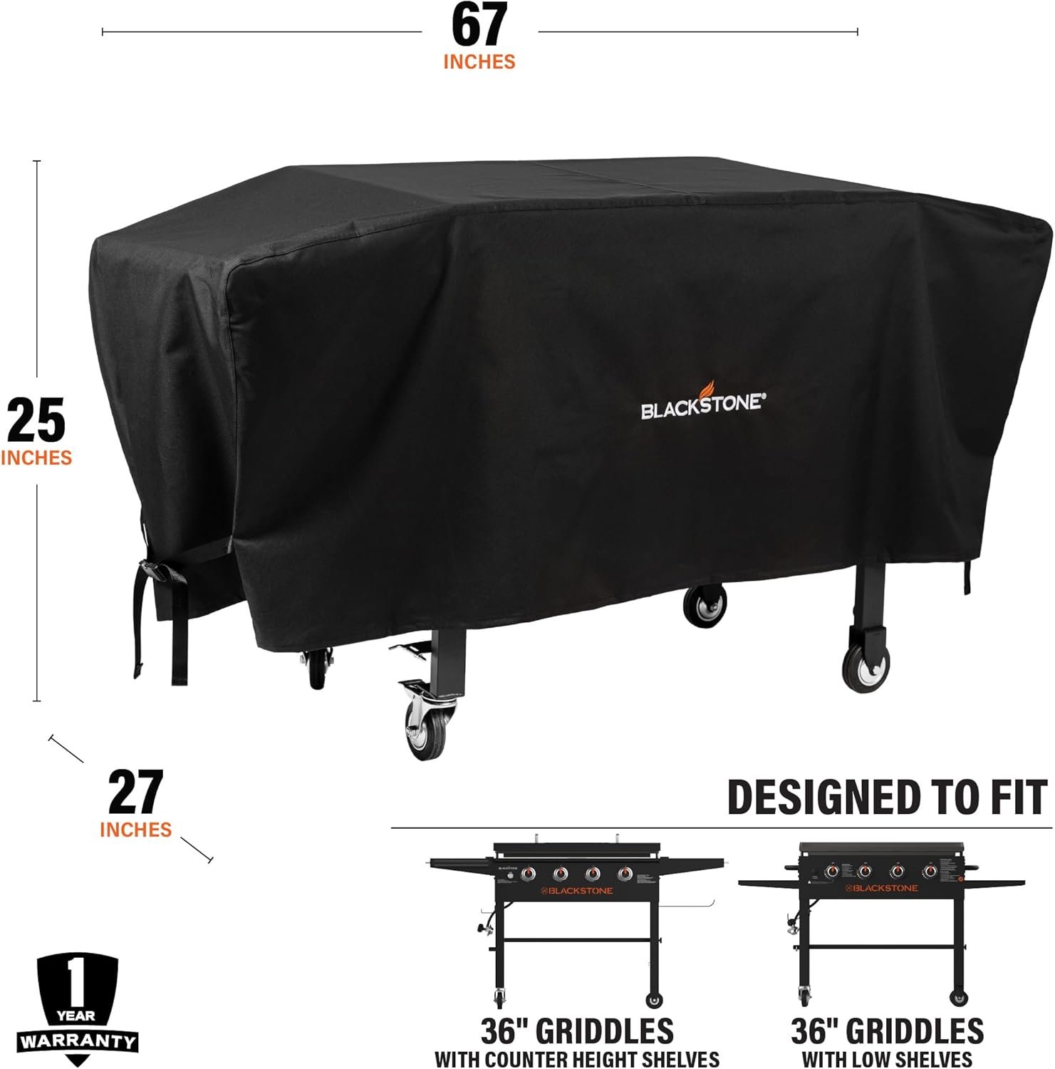 I bought a new 36” Blackstone and wanted it to be protected from the weather in the Northwest. This cover is inexpensive yet very well made. It even looks good on my Blackstone when it’s not in use. The fit is perfect for my model of Blackstone so I don’t have to worry about it blowing off. You won’t regret buying one of these covers.