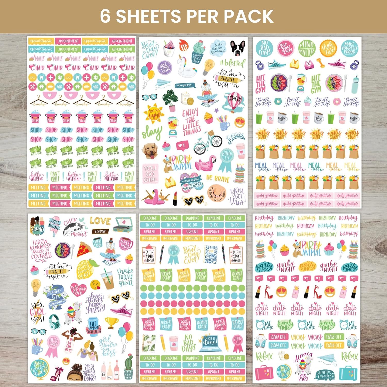 bloom daily planners Productivity Stickers – Variety Sticker Pack – Six Sticker Sheets Per Pack!
