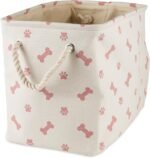 Bone Dry Pet Storage Collection Paw and Bone Print, Small Rectangle, 14x8x9″, Rose