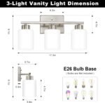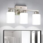 13 reviews for Brushed Nickel Bathroom Light Fixtures, 3-Light Modern Vanity Light Over Mirror, Wall Sconces with Milky White Frosted Glass Shades, E26 Socket (Bulbs Not Included)