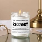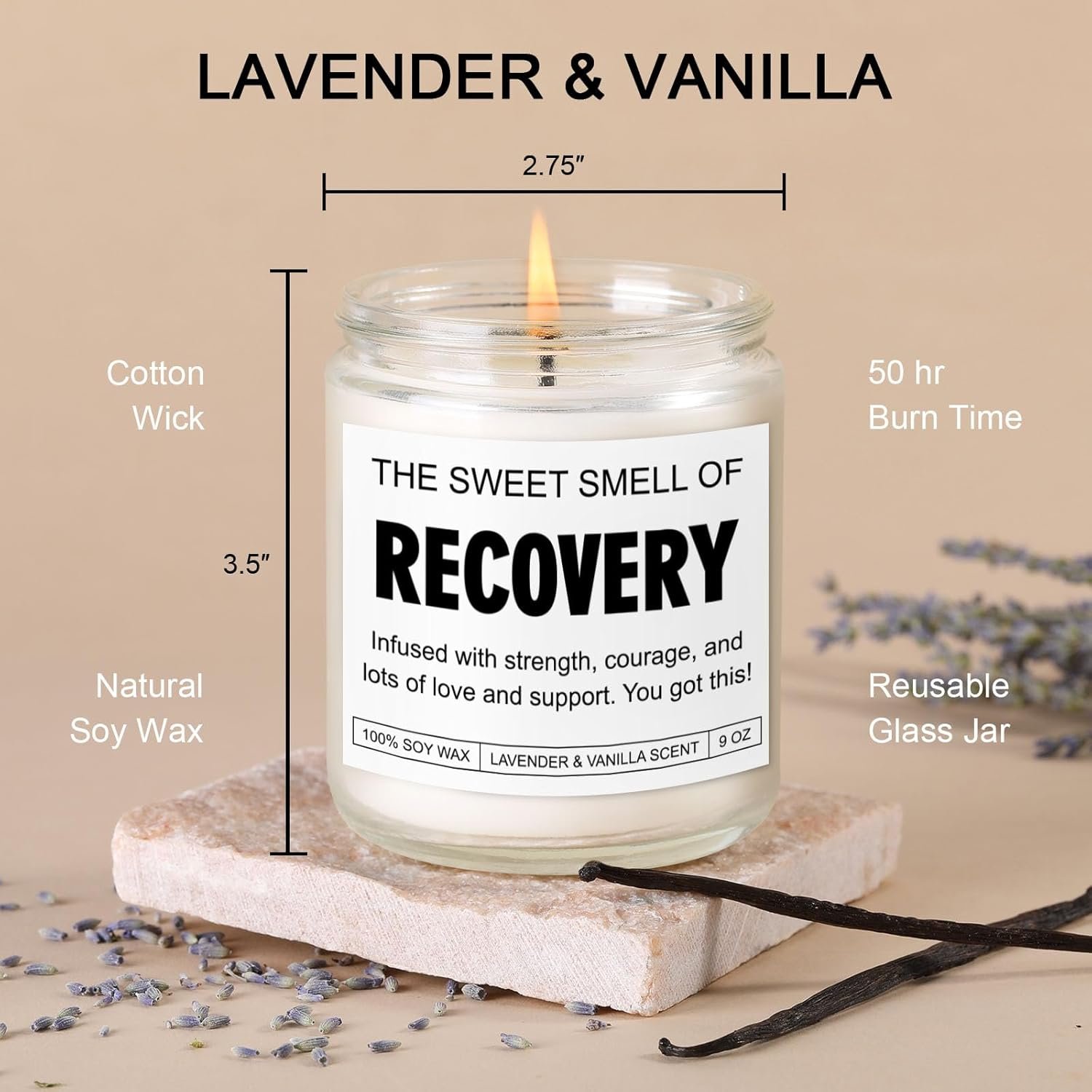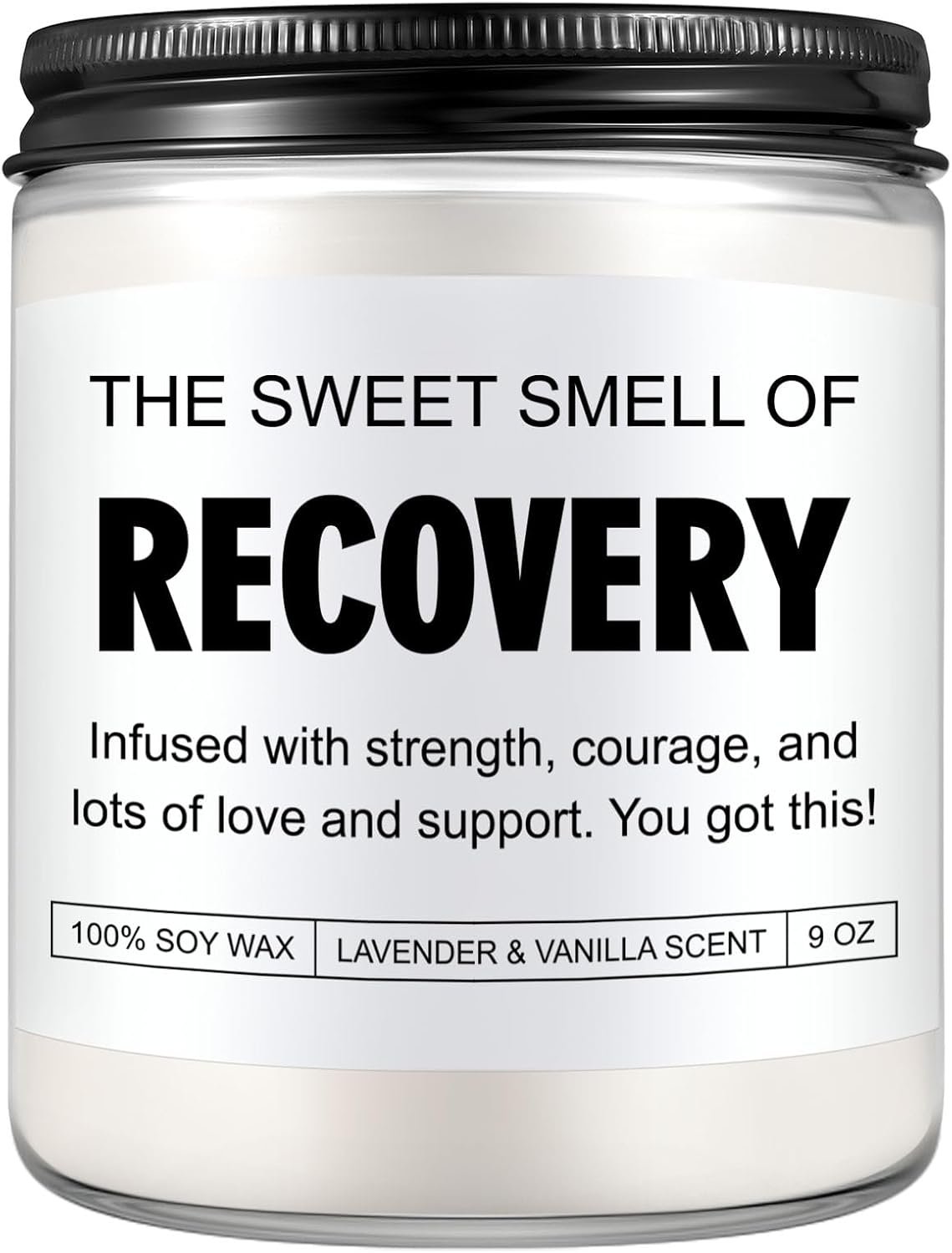 I ordered this candle as a get well gift, and it completely lifted my friend’s spirits spirits. The sleek white design with the black writing about recovery feels so meaningful and encouraging—it’s not just a candle, it’s a little daily reminder to keep going. The lavender vanilla scent is heavenly—soft, calming, and warm all at once—and it fills the room beautifully without being overpowering. The throw is impressive; I can smell it even in the next room! She thought this was such a thoughtful, high-quality gift. I’ll definitely be ordering more for friends and family when they need a perk up. I paired it with flowers, but the box is enough to present it on its own.