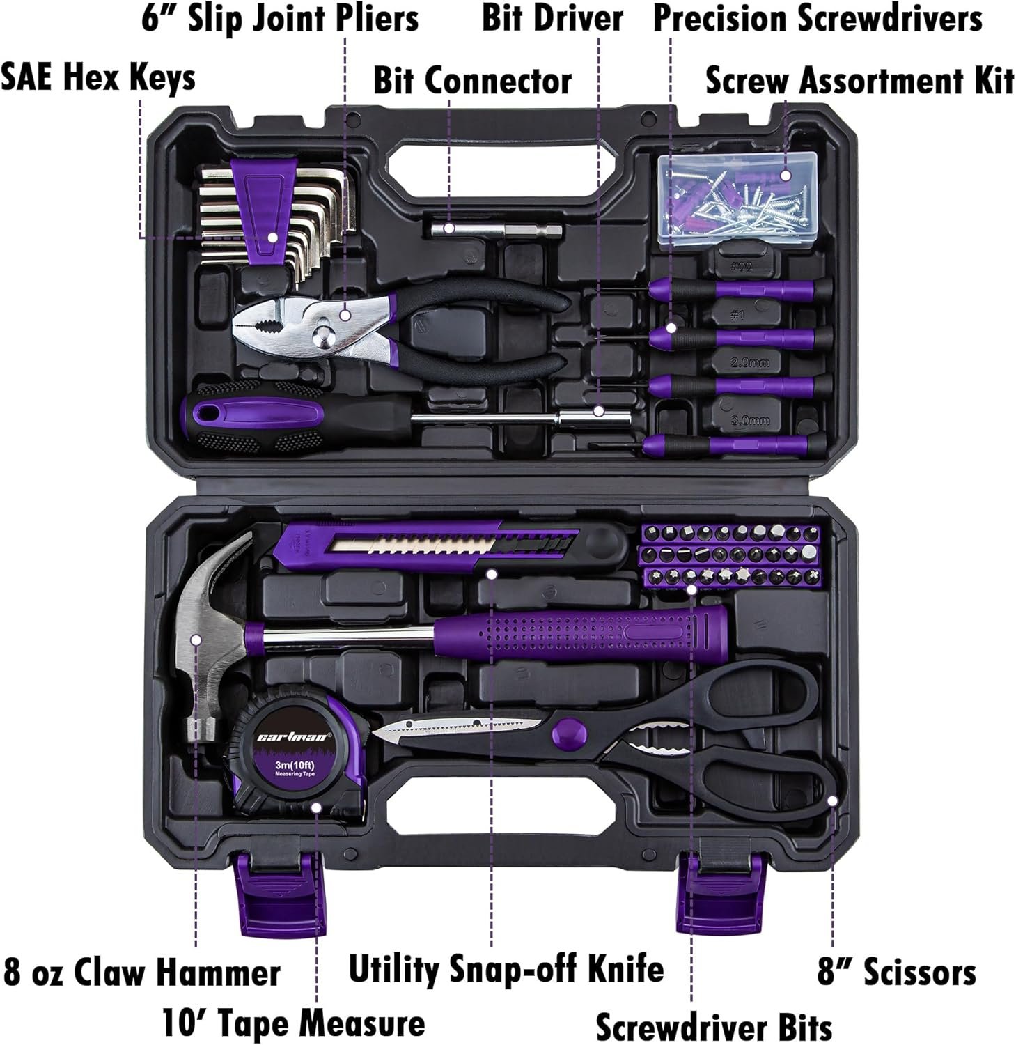 CARTMAN 126-Piece Home Tool Set Kit, Basic Household Hand Tools with Storage Case, Purple