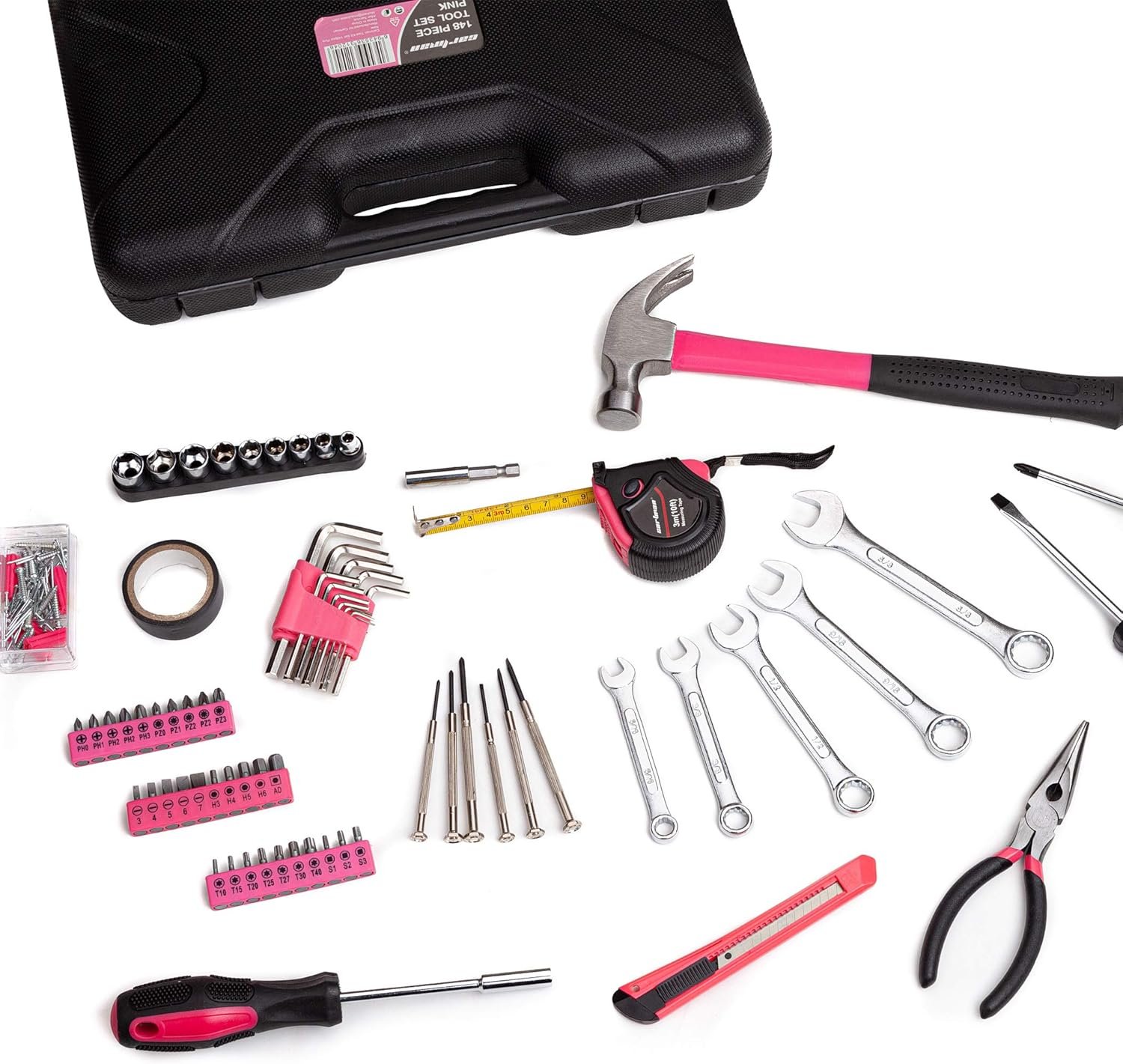 13 reviews for Cartman 148Piece Tool Set General Household Hand Tool Kit with Plastic Toolbox Storage Case Pink