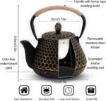 8 reviews for Cast Iron Tea Pot – Honeycomb Pattern Tea Kettle with Tea Leaf Infuser,Stovetop Tea Kettle Coated with Enameled Interior,Suitable for Brewing Loose Leaf Tea (Gold)