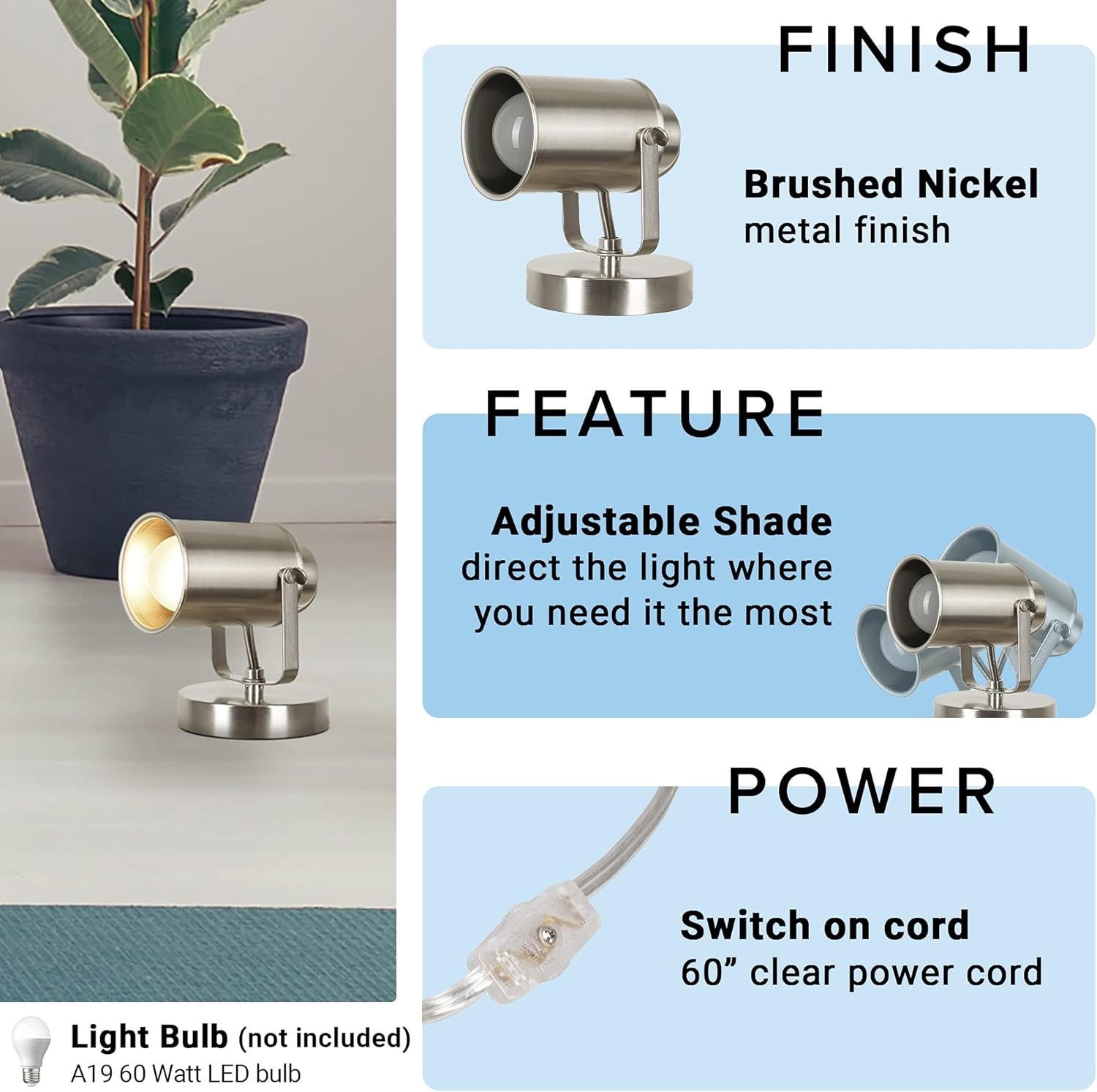 Be the first to review “Catalina Lighting Modern Multipurpose Spotlight Desk or Wall Mount Accent Lamp, 6″, Brushed Nickel, Pack of 1”