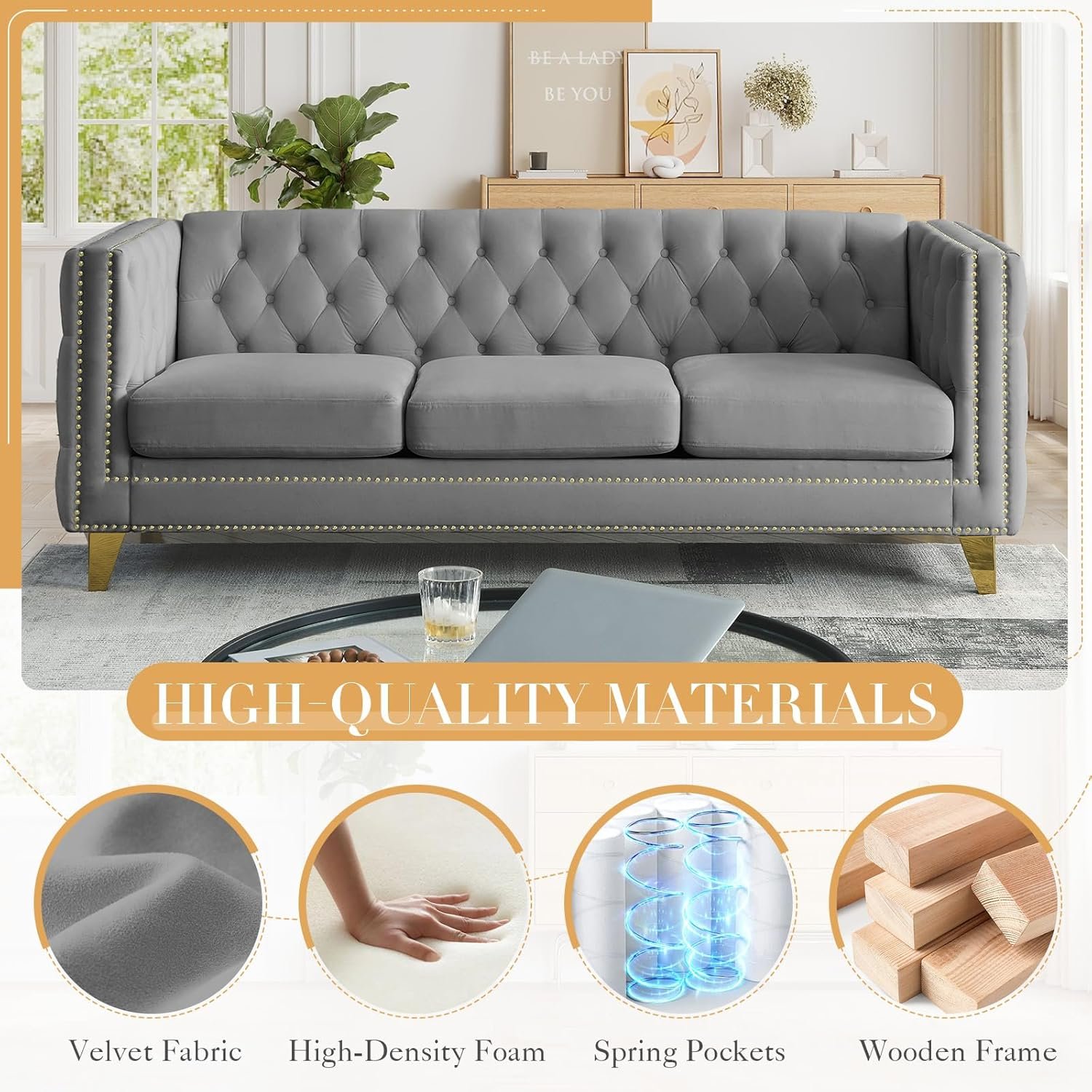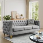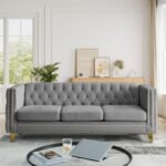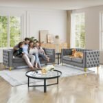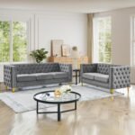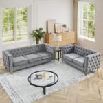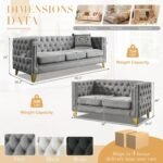 8 reviews for Chesterfield Sofa Set of 2, Modern Velvet Couch with Button Tufted & Nailhead Trim, Upholstered Deep Seat Couch, Comfy Sofa for Living Room, Bedroom, Apartment, Office(58″ W + 80.5″ W, Grey)