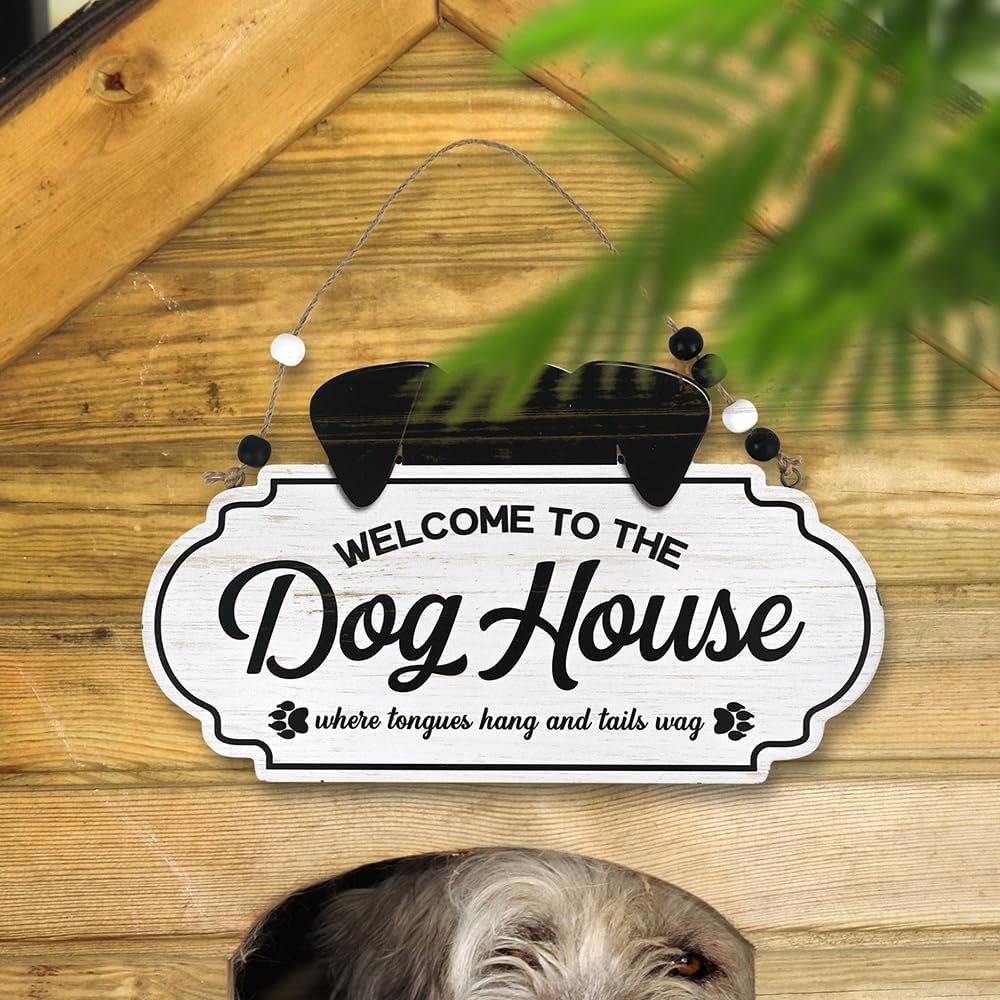 Chic Dog Welcome Sign – Wooden Front Door Decor for Dog Lovers