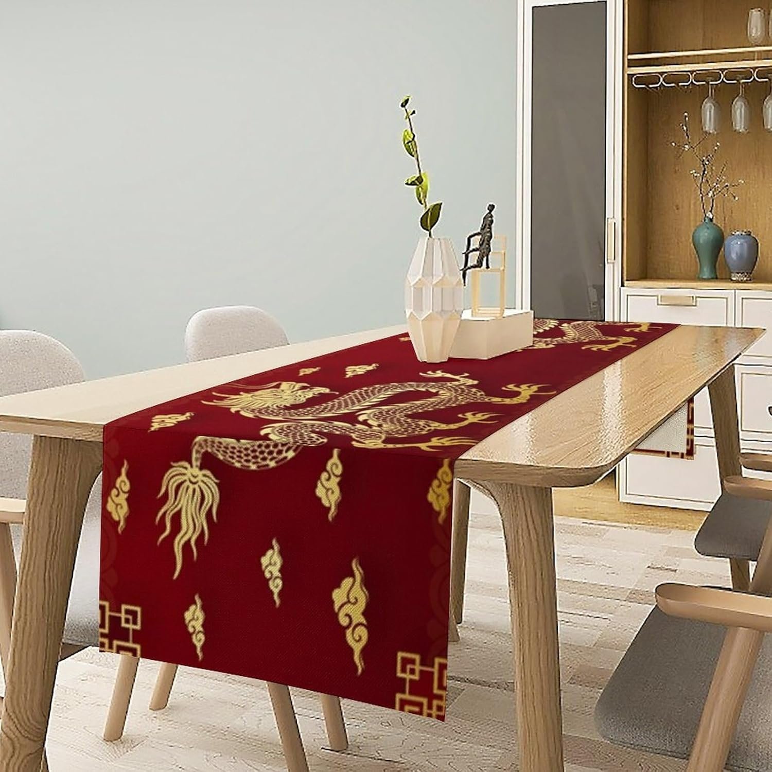 11 reviews for Chinese Dragon Table Runner, Happy Chinese New Year Asian Golden Dragon Cloud Print Table Runner for Home Party Kitchen Dining Table Decor, 13x60inch