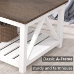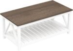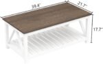 13 reviews for ChooChoo Farmhouse Coffee Table, Rustic Vintage Living Room Table with Shelf, 40 White