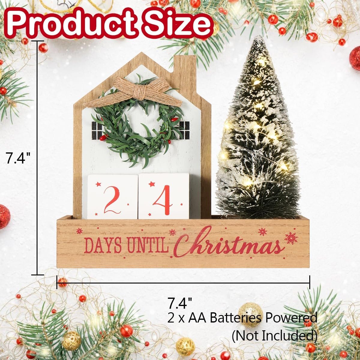 13 reviews for Christmas Tree Countdown Block LED Lighted 99 Days Until Christmas Wreath Calendar Tabletop with Timer Number Date Rustic Wooden Home Decor Holiday Xmas Ornament Desk Decoration Gift