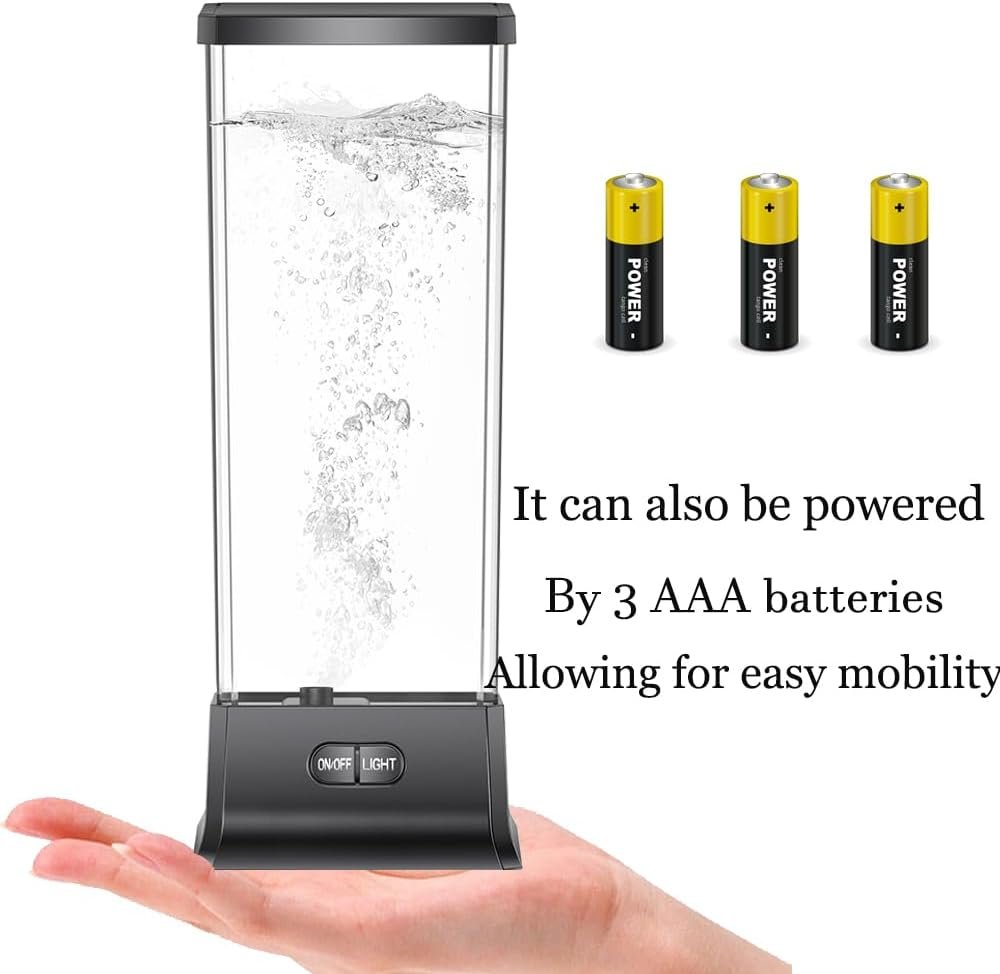 Perfect size for a dresser or desk. The display is relaxing and the design is sturdy.Initially, I left a negative review because the item quit working within a few uses.However, I changed out the power cord and the lamp is working well again.The cord was most likely the issue.