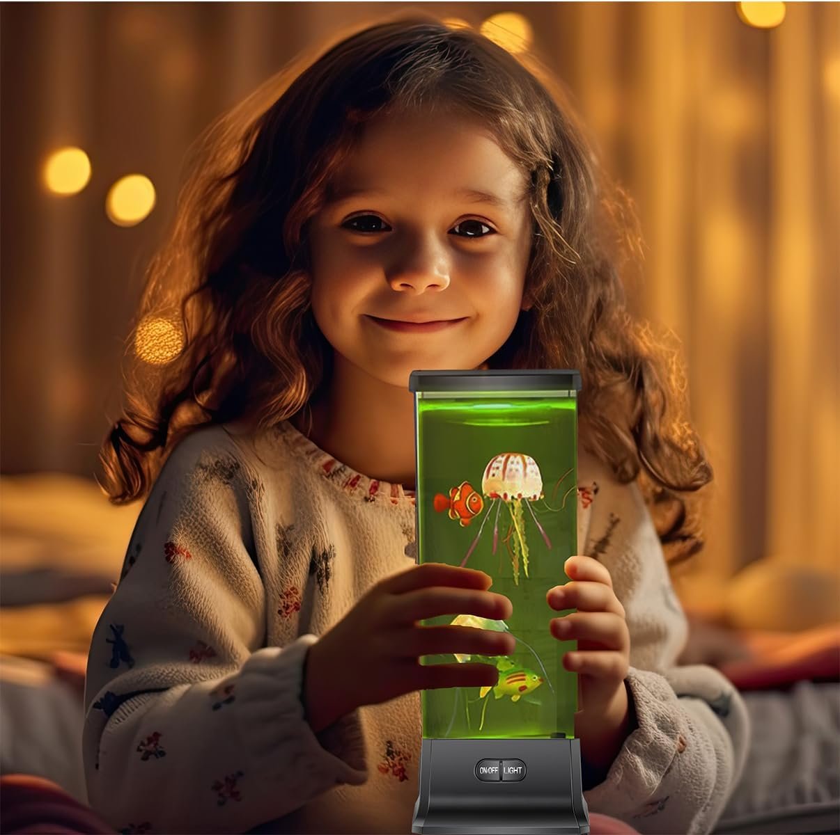 I bought this COLORLIFE Jellyfish Lamp for my 12-year-old daughter who is obsessed with marine life, especially jellyfish, and it was an absolute smash hit! It’s much more than just a night light; it’s a centerpiece for her room.Realistic Movement: The silicone jellyfish swim and drift in the water with surprising realism. Watching them under the changing colored light is incredibly soothing and mesmerizing. She literally stares at it for ages before falling asleep.Bluetooth Speaker is a Huge Bonus: The built-in Bluetooth speaker is powerful enough for her room, and she loves connecting her phone to listen to music or ambient sounds while watching the lamp. It’s a great two-in-one feature.Easy to Use Remote: The remote control is simple and intuitive, letting her change the light colors, switch modes, and adjust the music volume without having to get out of bed. The colors are vibrant and create a beautiful, relaxing glow.Perfect Night Light: It casts a soft, calming light that makes her feel safe without being too bright. It’s the perfect mood setter for winding down in the evening.It was easy to set up (just follow the instructions for adding the water and a few drops of dish soap for the best movement!). If you have a child who loves aquariums or needs a fun, relaxing night light, this is a fantastic purchase. Highly recommend!
