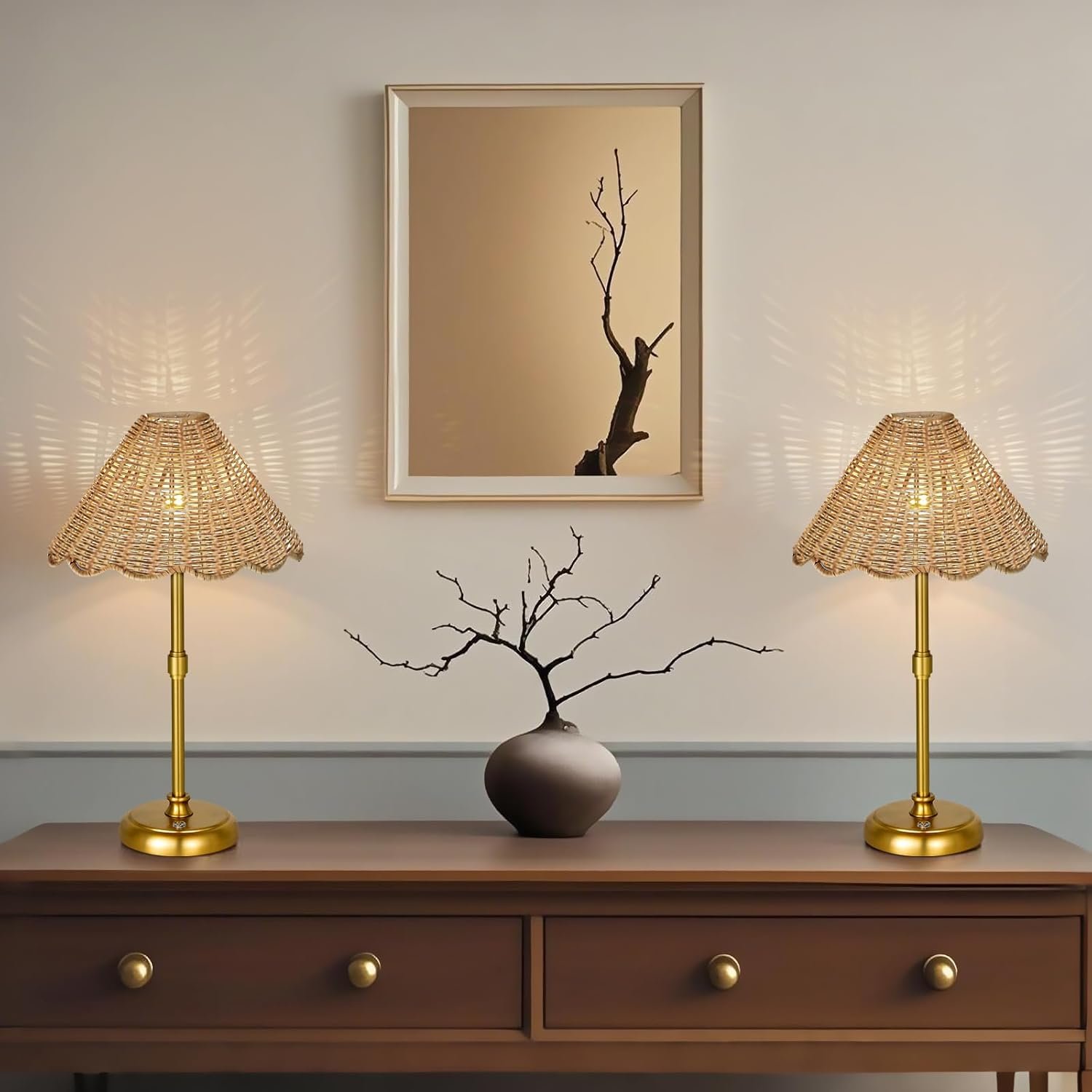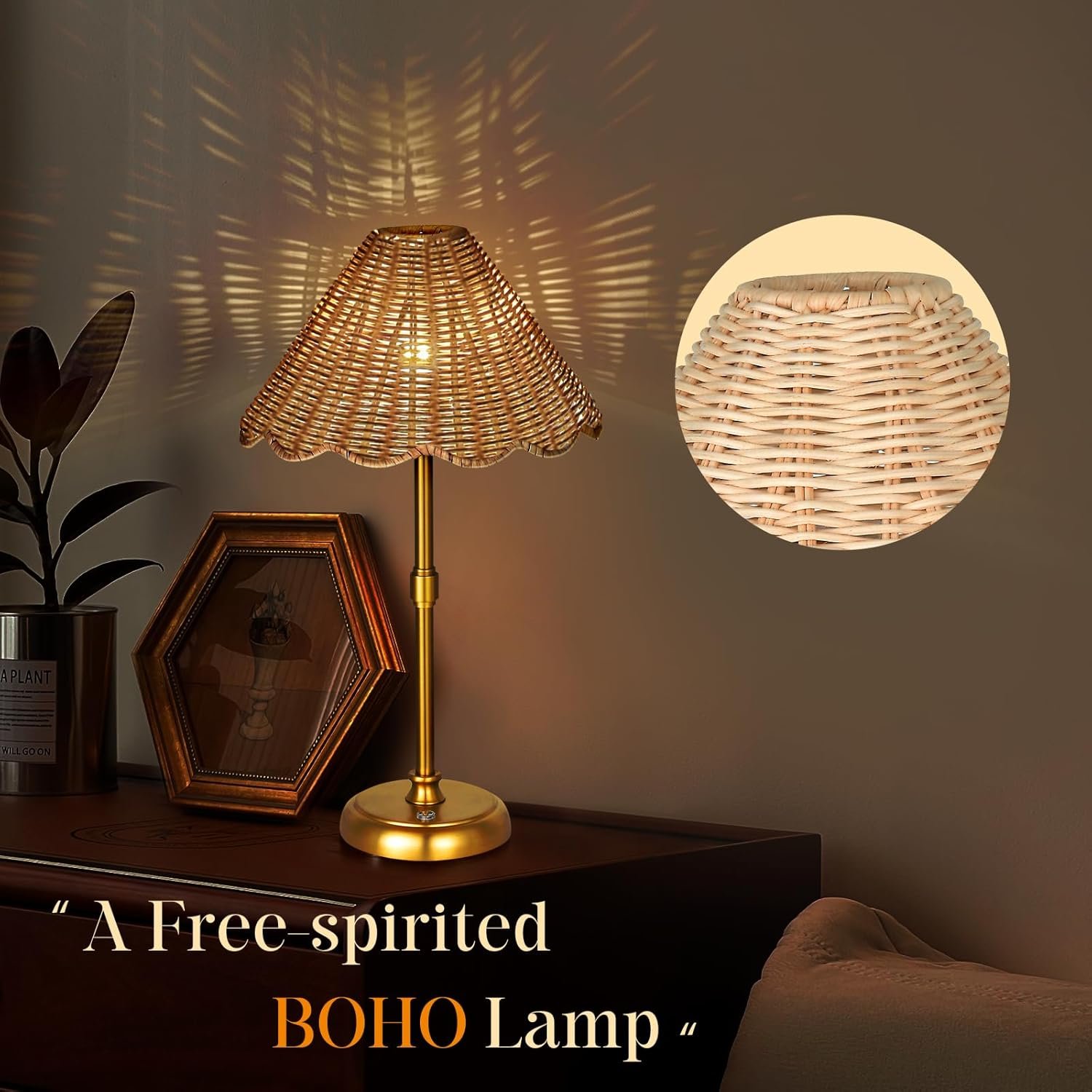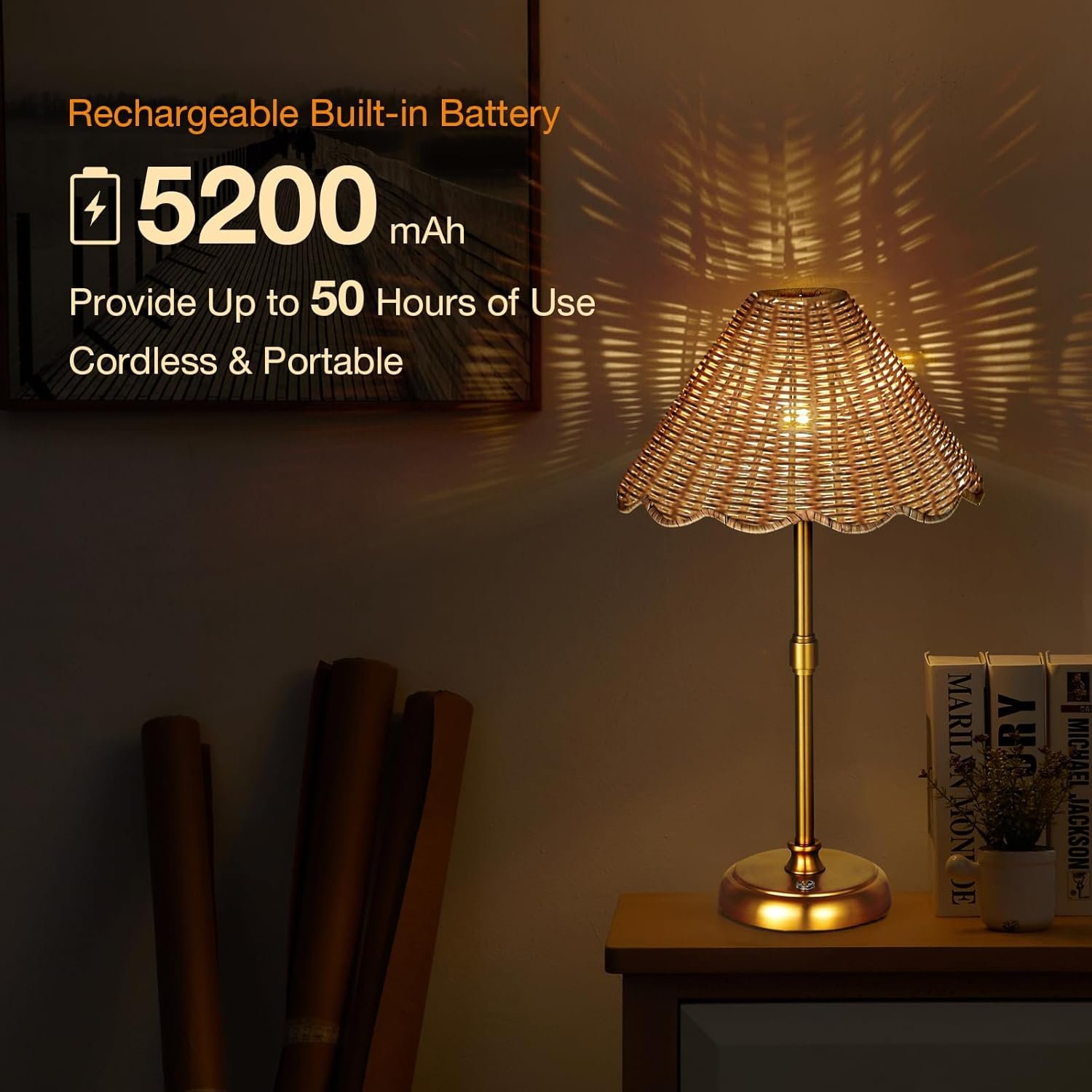8 reviews for Cordless Boho Rattan Table lamp, 5200-mAh Rechargeable Battery, 3-level Brightness Dimmable, Build-in Integrated LED 320 Lumen Max, Rattan Shade, for Bedside Restaurant Resort Hotel Dining Table