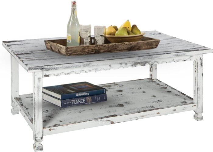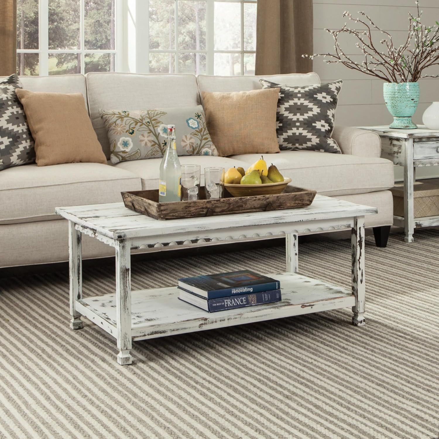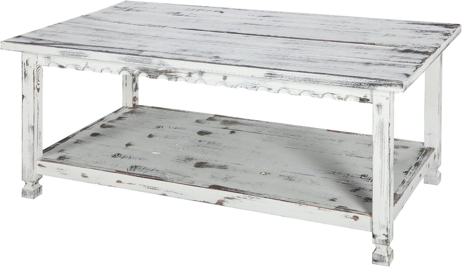 8 reviews for Country Cottage 42-Inch Farmhouse Coffee Table with Storage Shelf and White Antique Finish for Living Room or Family Room by Alaterre Furniture