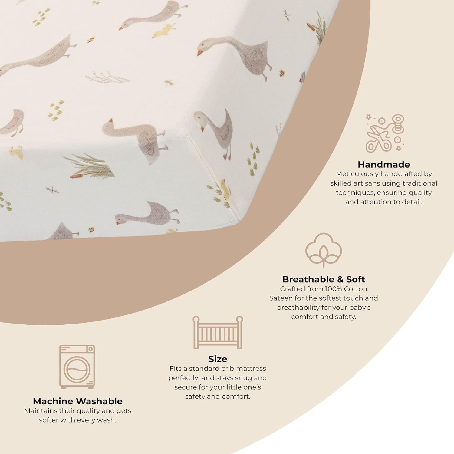 Crane Baby Charlie Farmhouse Goose Crib Fitted Sheet, 100% Cotton Baby Bed Sheets, Farm Nursery Decor, Crib Sheets for Boys and Girls, Baby Registry Gift, Goose Nursery Décor
