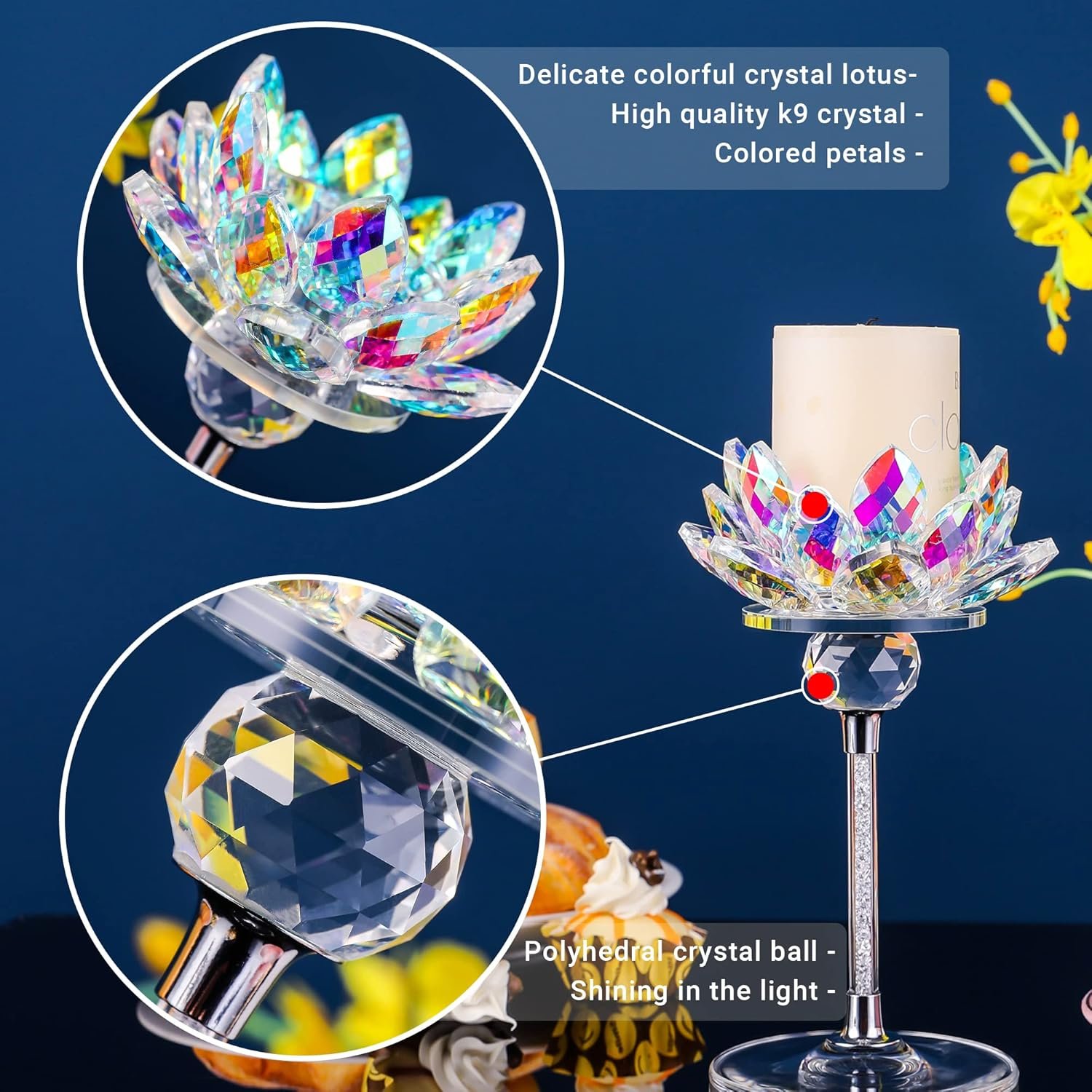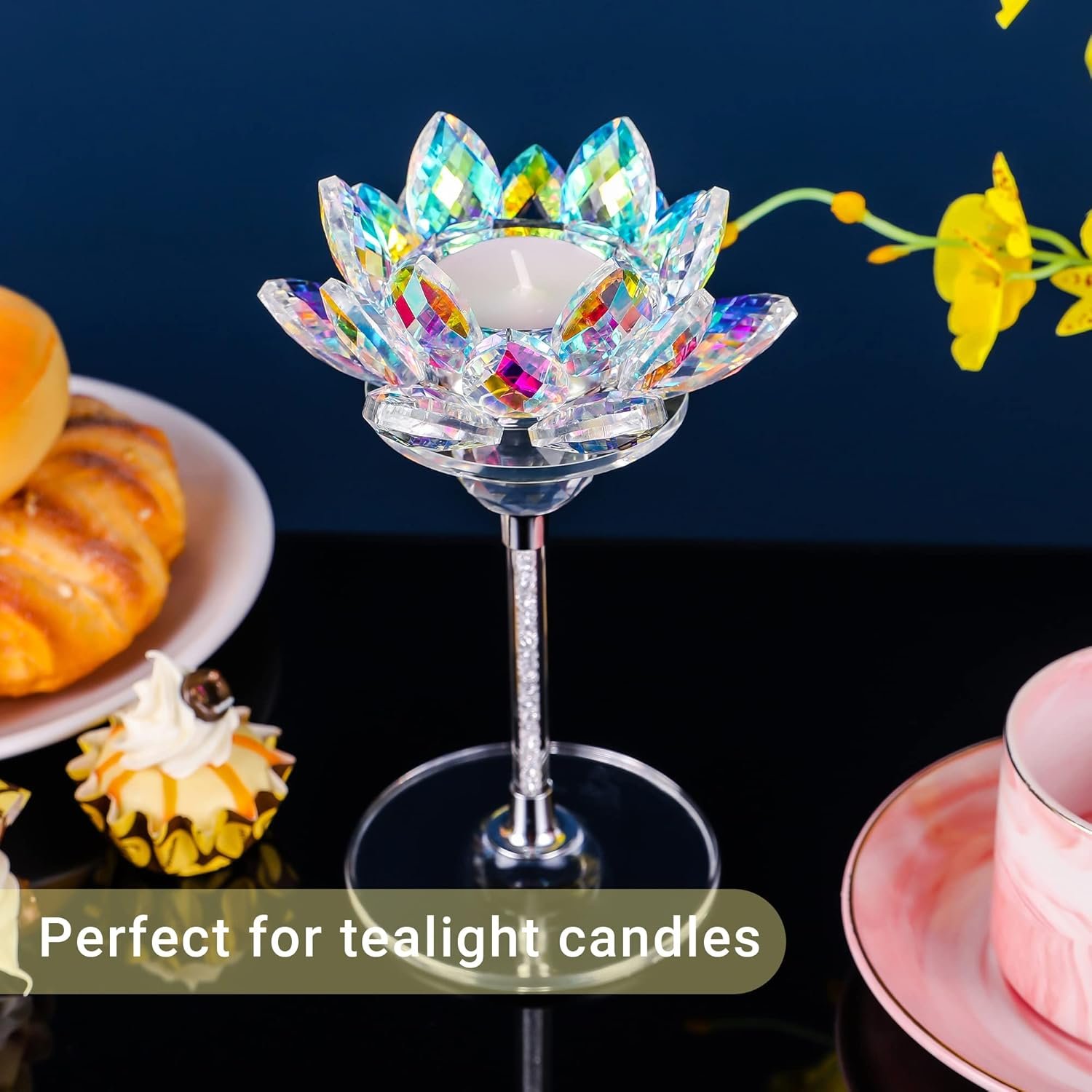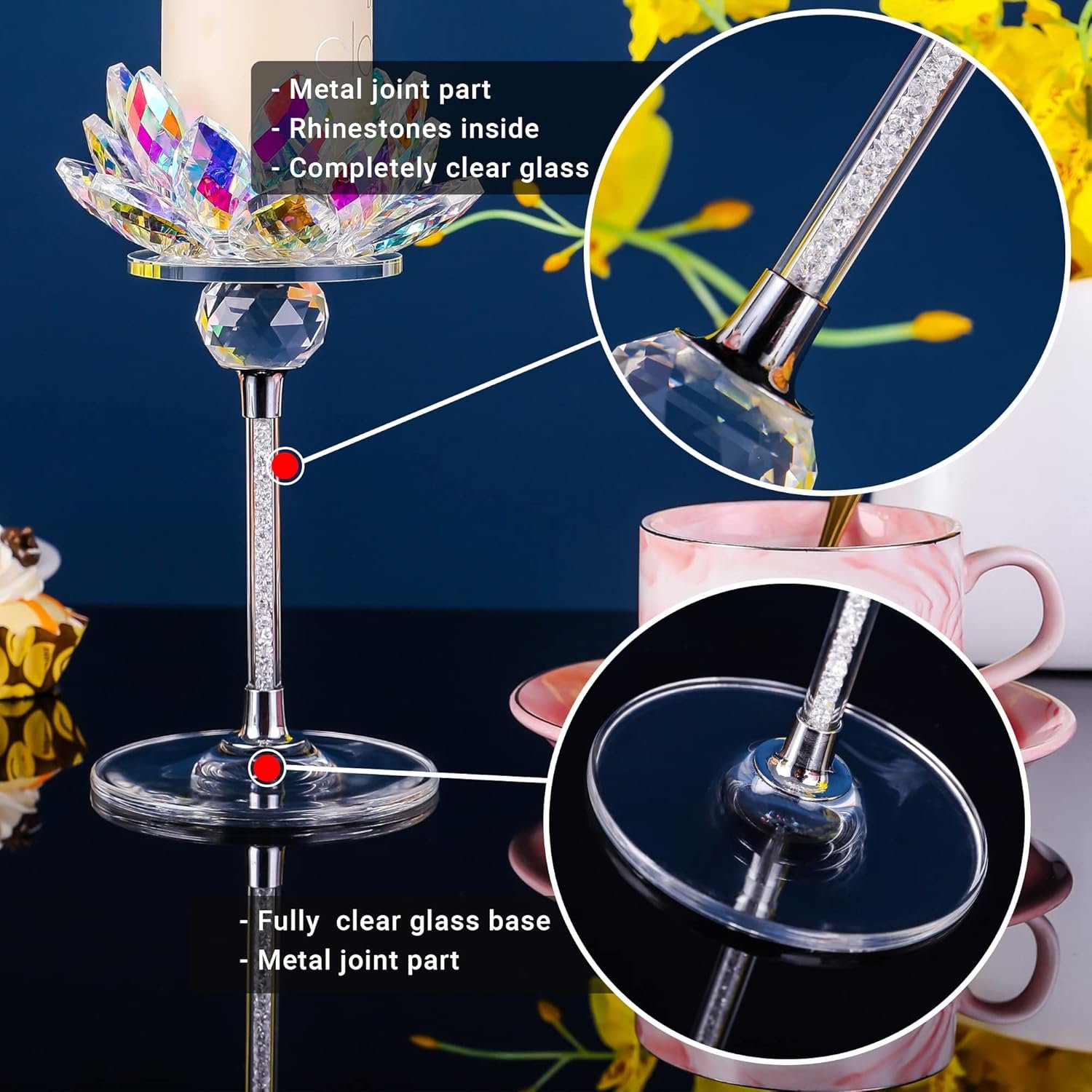 8 reviews for Crystal Candle Holders Set of 2, Lotus Flower Tealight Holders with Clear Glass Base, Rhinestone Stand and Ball, Elegant Table Centerpieces for Home Decor, Wedding, Party