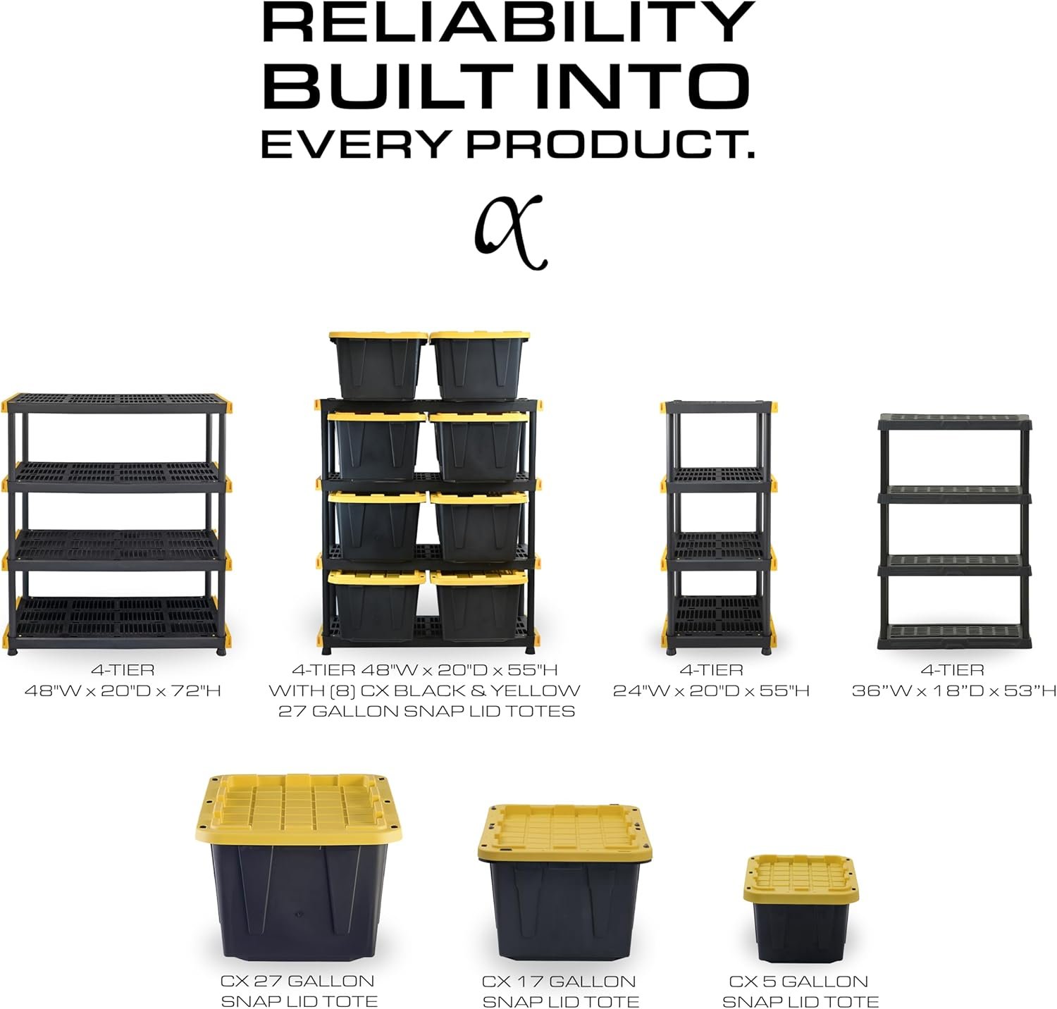 8 reviews for CX Black & Yellow®, 5-Tier Heavy Duty Plastic Storage Shelving Unit, 200lbs/shelf (72”H x 48”W x 20”D), for Indoor/Outdoor Organization, Modular Rack