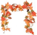 10 reviews for DearHouse 6ft Pumpkin Fall Maple Leaves Garland – Artificial Autumn Foliage Hanging Vine for Thanksgiving, Home, Wedding, Fireplace, Party, Christmas Decor (Orange & Brown)