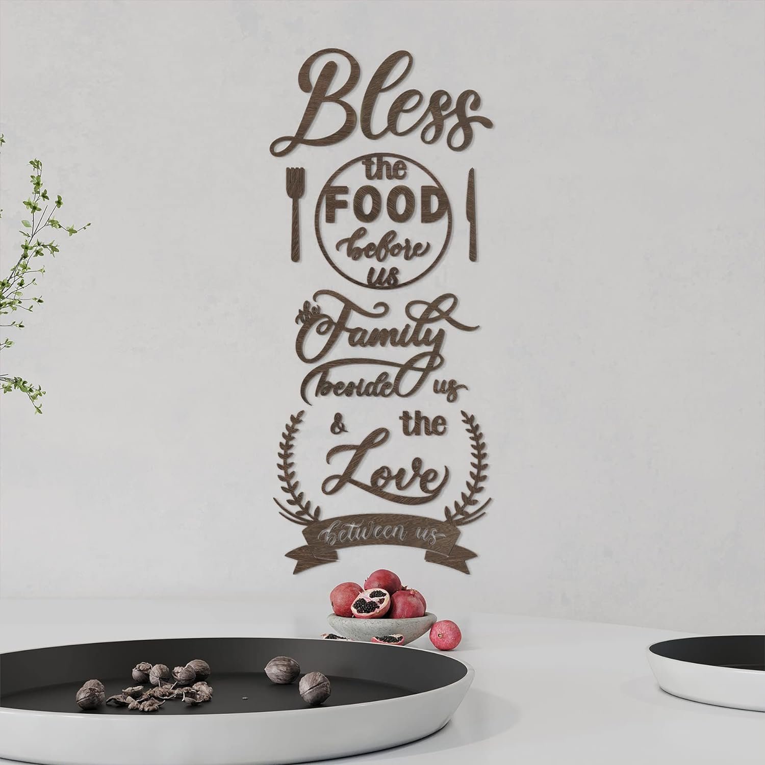 DecorSmart Wood Farmhouse Kitchen Wall Decor Decorations Dining Room Wall Decor Kitchen Signs Quotes Bless The Food Modern Farmhouse Style 129